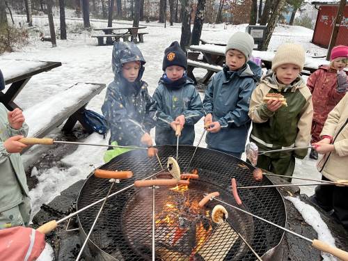 Vi har også hatt innholdsrike dager på uteskole med sol, regn, sludd og snø - været er ingen hindring for oss på 1.trinn!