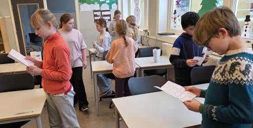 Tirsdag etter vinterferien skal elevene gjennomføre en oppsummeringsoppgave fra perioden. Den vil bestå av ulike spørsmål og oppgaver fra det de har lært, og skal gjennomføres uten bruk av hjelpemidler. Det blir spennende å se hvor mye kunnskap hvert barn sitter igjen med!