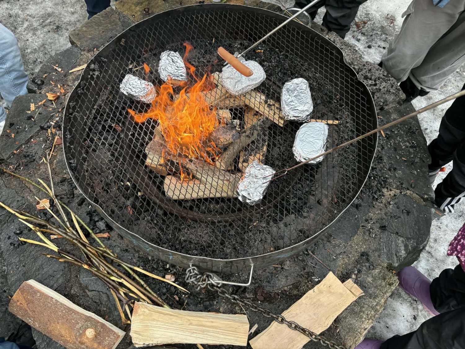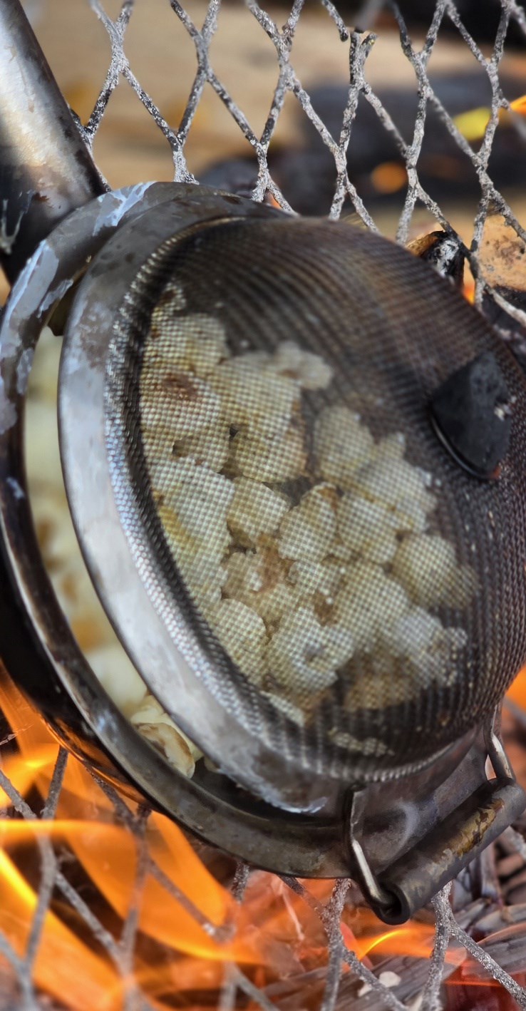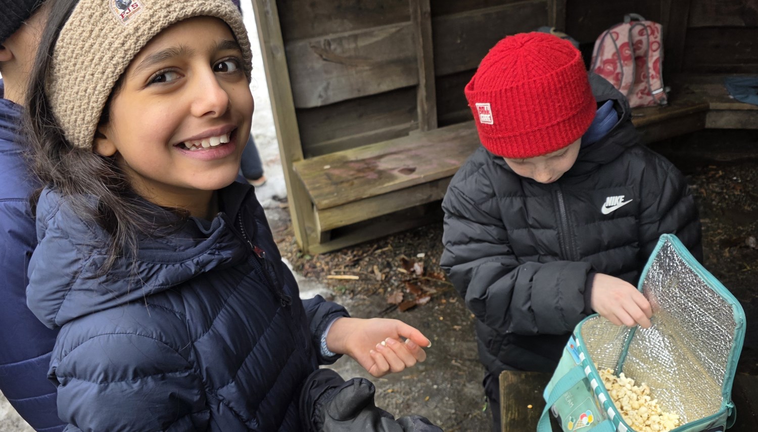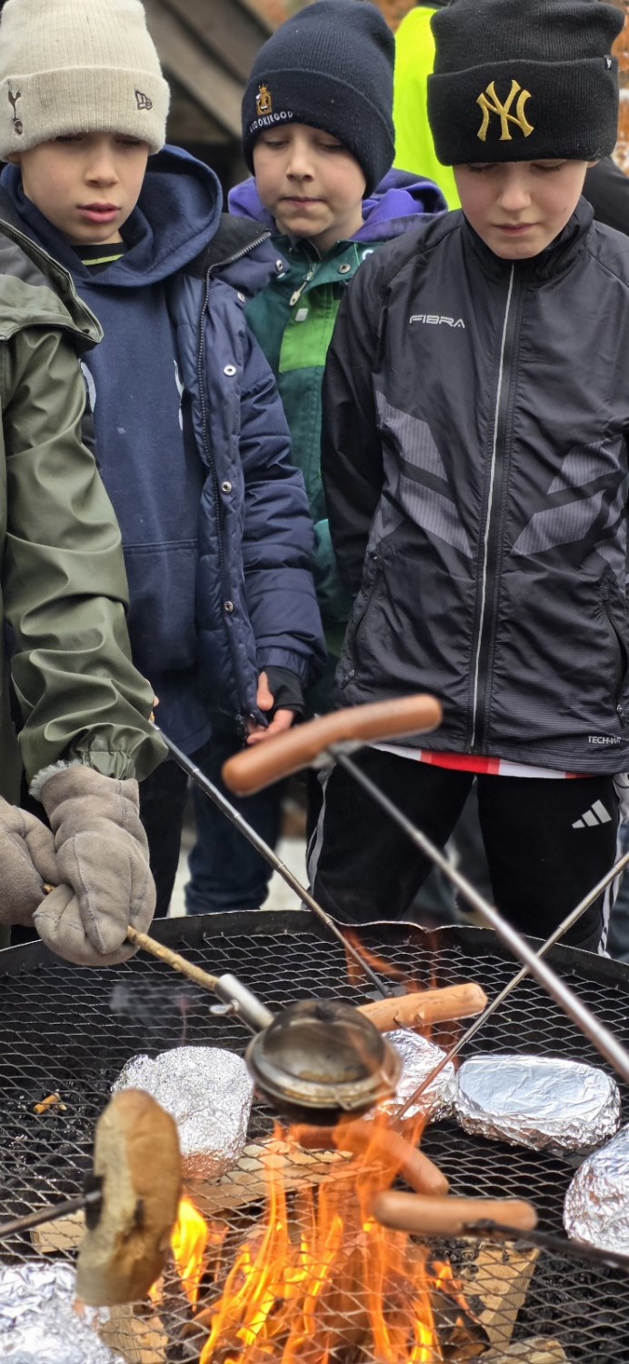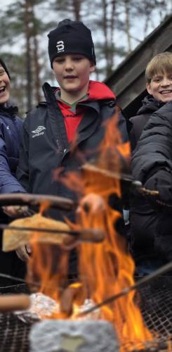 Våre faste lærere; Hermann, Sander og Anne-Lise, var selvfølgelig også på uteskolen. De tente opp bålet så alle fikk grilla og varma seg, og ikke minst så maiskorna spratt til popcorn! En overraskelse som en av elevene hadde med seg, og som ble delt ut til alle som ville ha! Kjempekoselig!