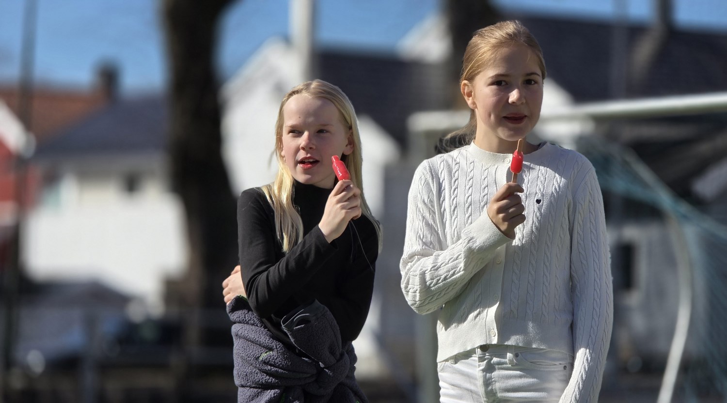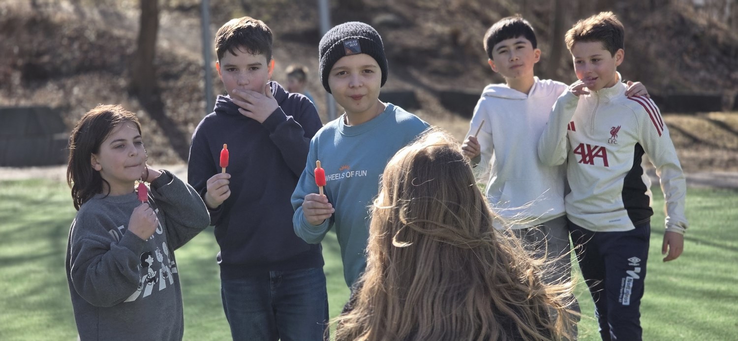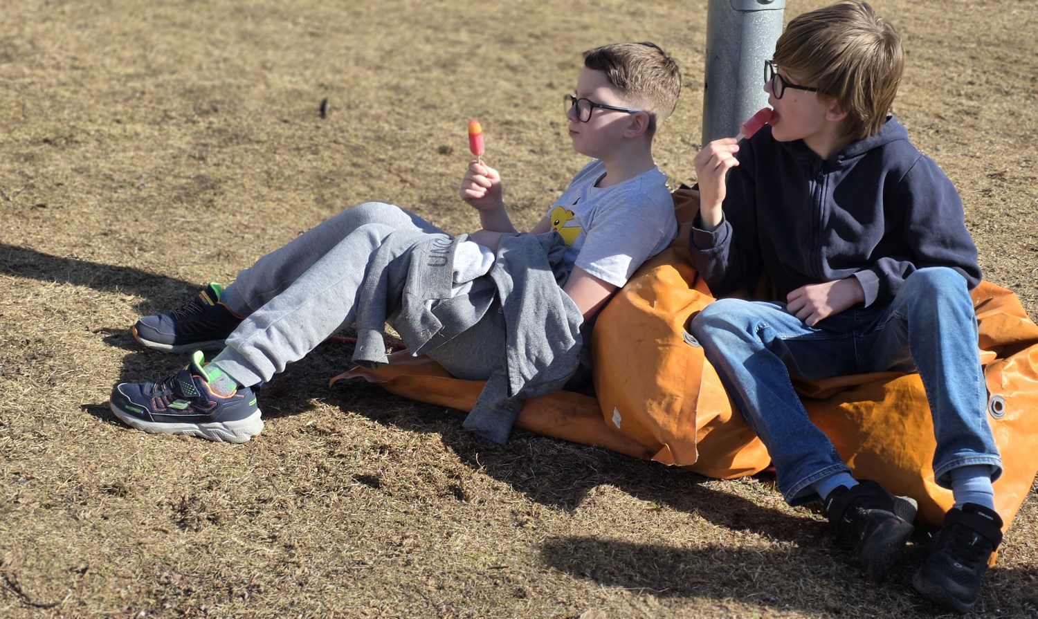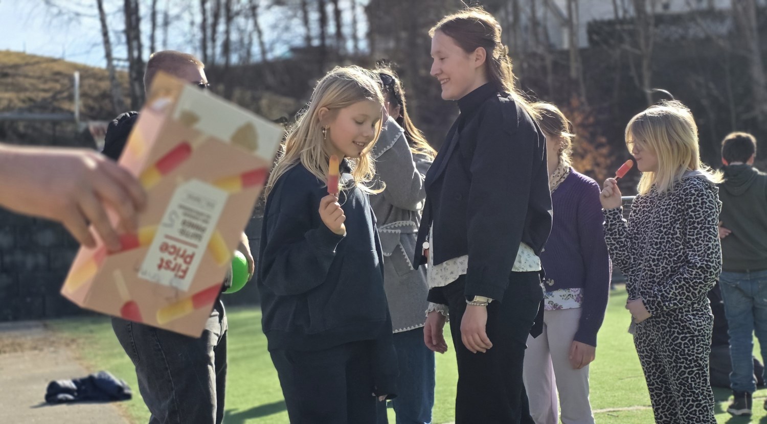 Med varmende sol fra klarblå himmel smakte det deilig med saftis og en pust i bakken etter tautrekking og kanonball mot slutten av dagen. Innendørs løfta taket seg da elevene sang "boom, boom, boom, og gratulerer med dagen" for Camilla som snart fyller år, før det vanket klemmer og takk for nå, og ønsker om ei fin helg!