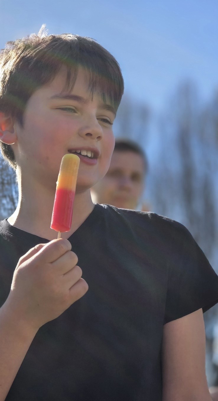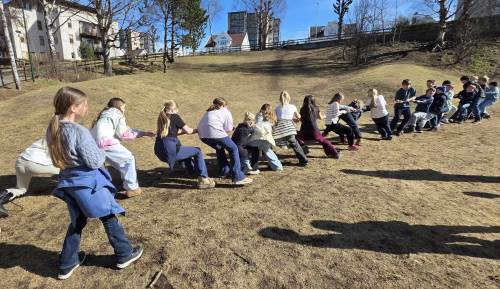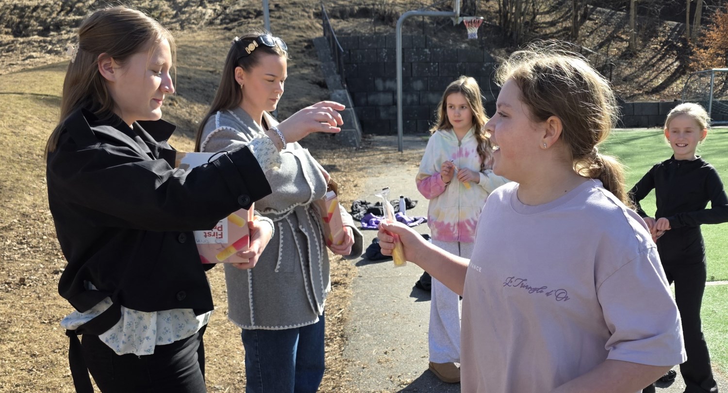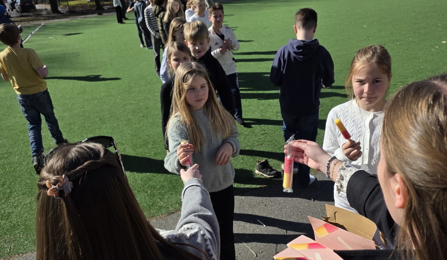 Med varmende sol fra klarblå himmel smakte det deilig med saftis og en pust i bakken etter tautrekking og kanonball mot slutten av dagen. Innendørs løfta taket seg da elevene sang "boom, boom, boom, og gratulerer med dagen" for Camilla som snart fyller år, før det vanket klemmer og takk for nå, og ønsker om ei fin helg!