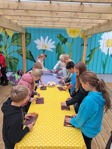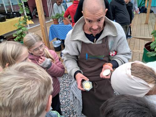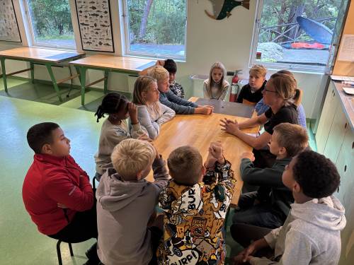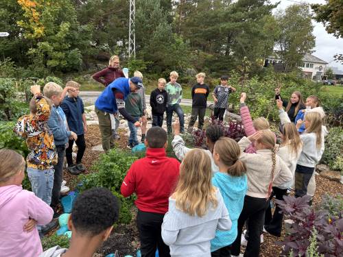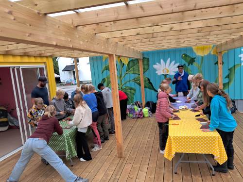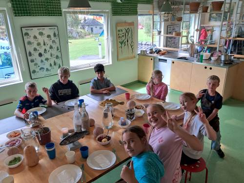 23 spente barn og 2 voksne møtte spente opp på Odderøya og traff to hyggelige og dyktige formidlere.