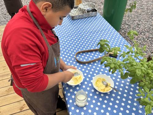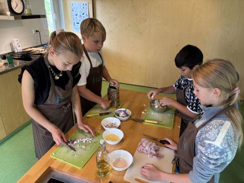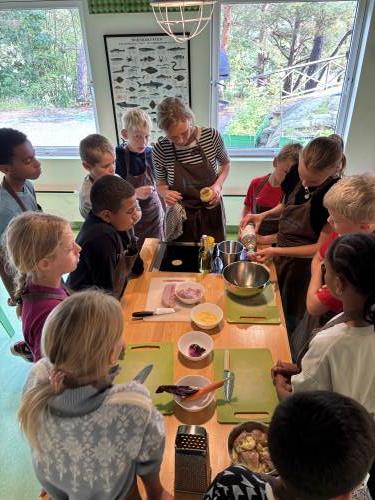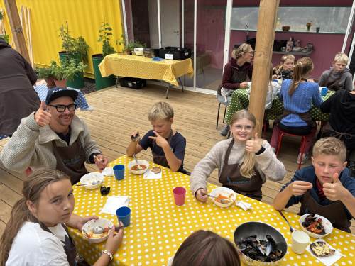 Første dagen lærte Helene og Nikolai oss om grunnsmakene, spiselige vekster, hvordan man lager smør, to ulike knivgrep, hvordan se forsjellen på dårlige og gode blåskjell og tilbereding av mat på bål. Denne dagen laget barna en blåskjellgryte helt fra bunnen av. NAM!