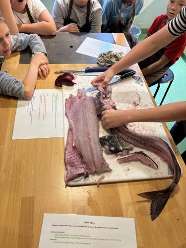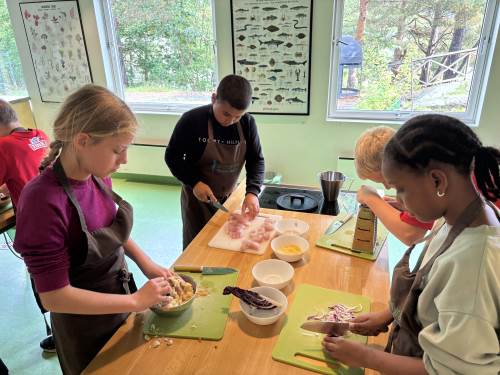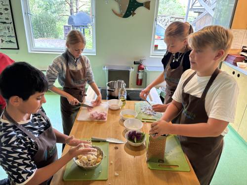 Dag to møtte vi opp på fiskebrygga. Der stod Helene og Marcus (en av norges raskeste filetskjærere) og ventet på oss. Denne dagen var fokuset på å lære om organene til fisken og tilbereding av fisk. På menyen denne dagen var det tacoinspirerte fiskepinner med egenlagde potetlomper og ulike salater. NAM!