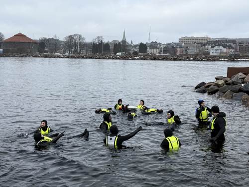 Redningsselskapet har holdt livredningskurs for elevene på ungdomstrinnet. De har øvd på hjerte- og lungeredning, kastet livredningsbøyer og lært hvordan de kan hjelpe andre hvis noen faller i vannet. Elevene fikk også prøve seg i det 3 grader kalde vannet, lærte seg ulike samarbeidsøvelser og hvordan komme seg opp fra vannet.