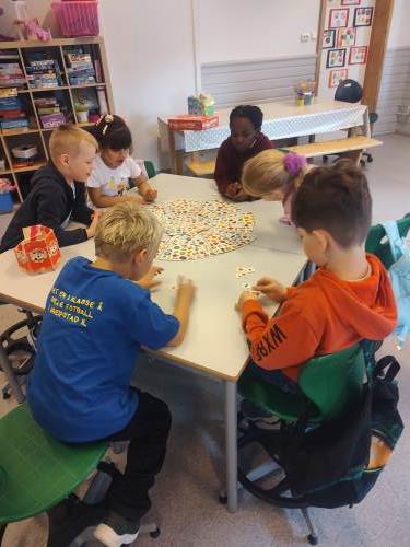 1. og 4. klasse har kost seg med å lage fruktsalat sammen, Mens noen jobbet på kjøkkenet, spilte resten brettspill sammen i klasserommet. Alle var med og hjalp med å kutte frukt, elevene var kjempeflinke:)
