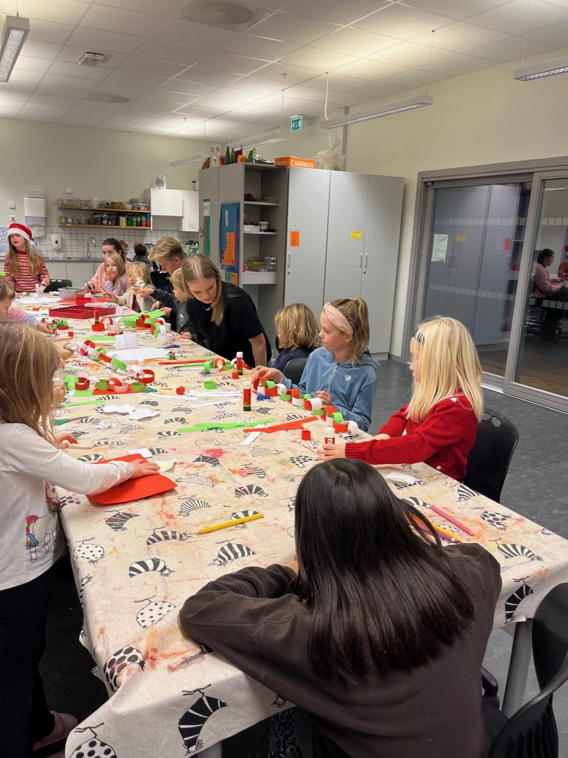 Juleførebuingane er godt i gang på SFO! Barna lagar pynt, syng songar og neste veke vert det pepperkakebaking.