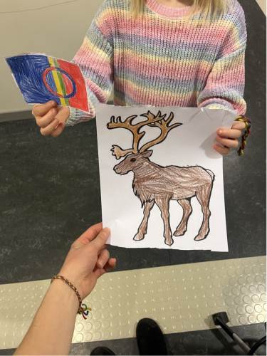 No er vi allereie i februar. Denne veka har vi hatt lageaktivitet rundt tema morsdag, vore ute å leika, perla, teikna, hatt dans i aula og gym. Fredag 06.02 er det samenes nasjonaldag. I SFO gangen har vi eit fint tre med inspirasjon frå samisk kultur og tradisjon. Barna laga også Duodji (samisk armbånd/pynt) og teikna kopi med samisk tema.
