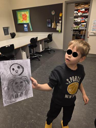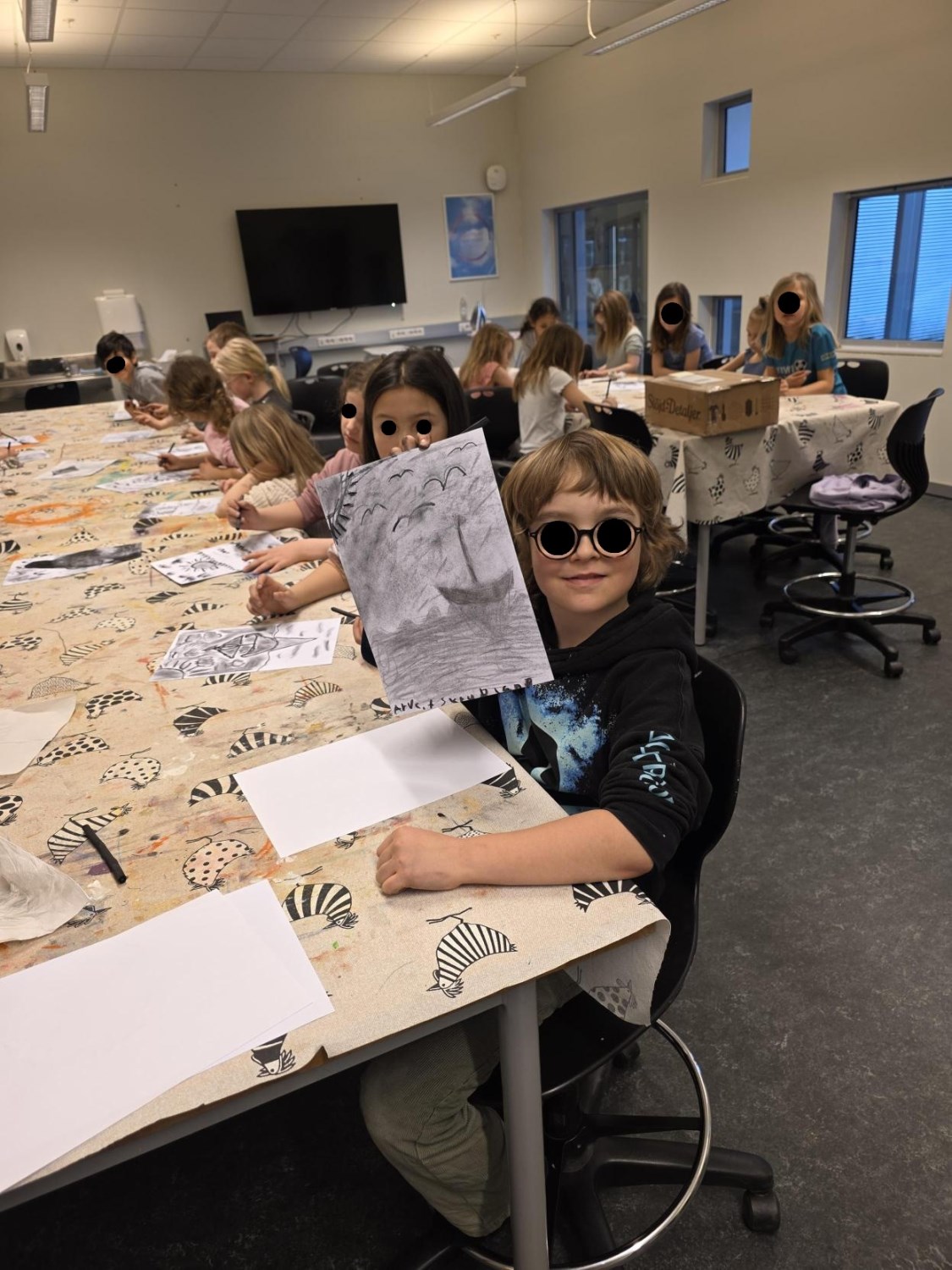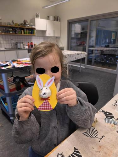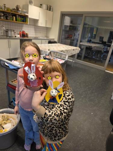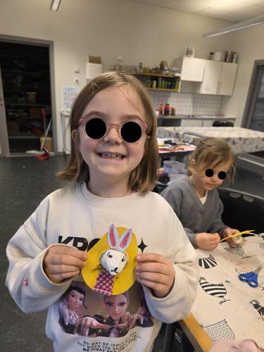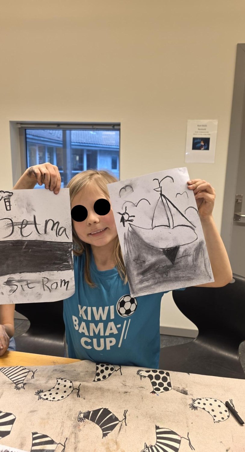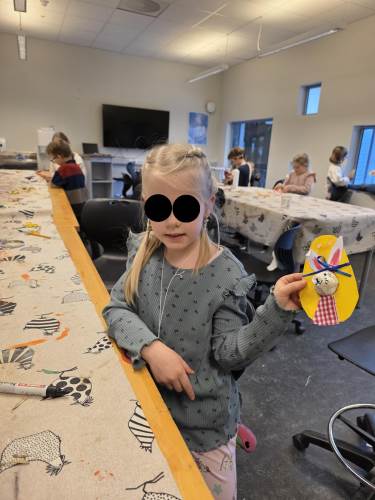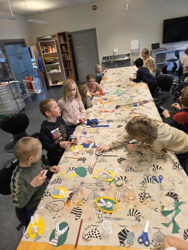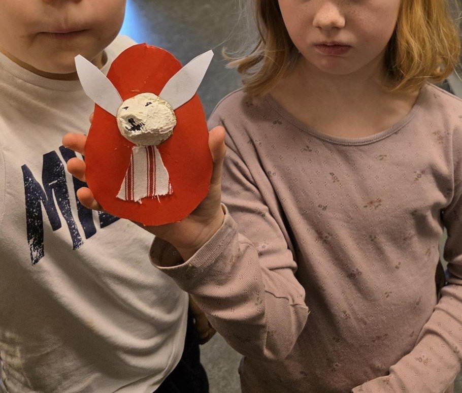 Barna har òg vore kreative inne. Dei har laga påskepynt, flotte vårlege kunstverk, og teikna med kullstifter – mange spennande uttrykk og fine resultat.