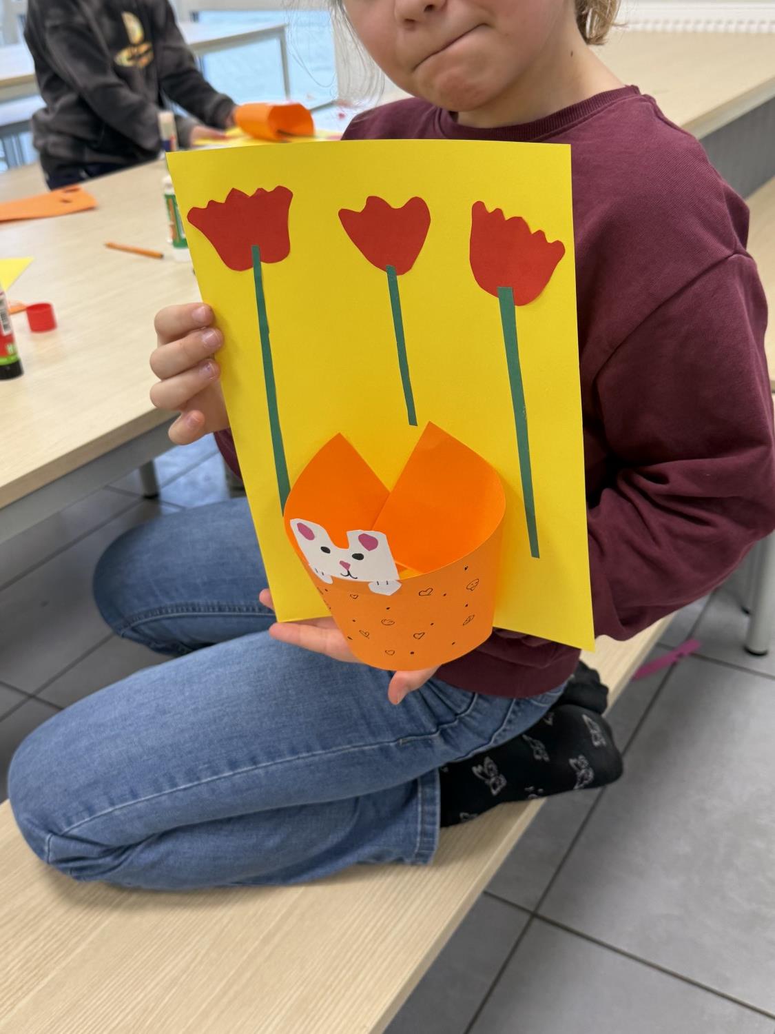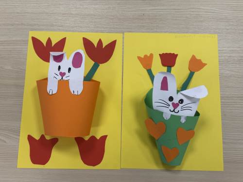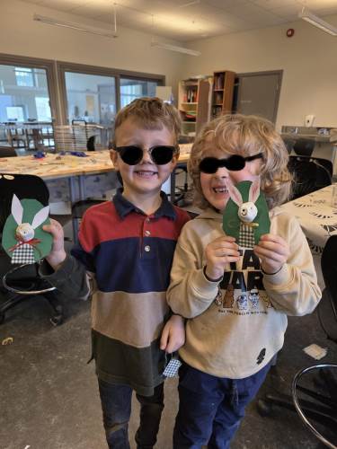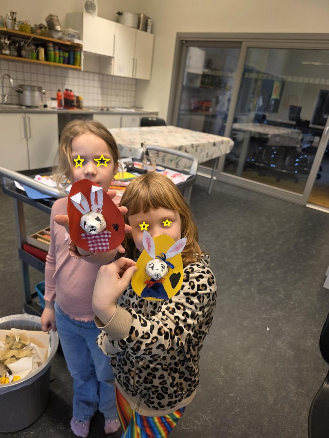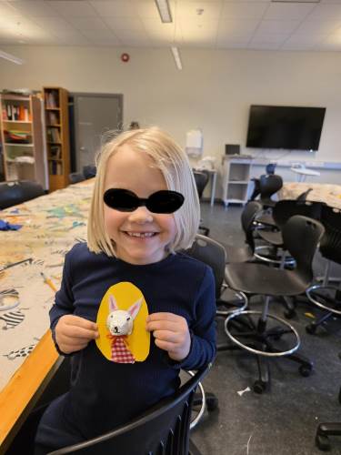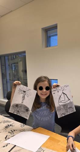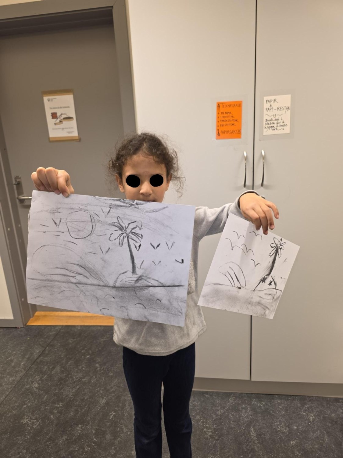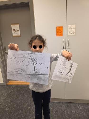 Barna har òg vore kreative inne. Dei har laga påskepynt, flotte vårlege kunstverk, og teikna med kullstifter – mange spennande uttrykk og fine resultat.