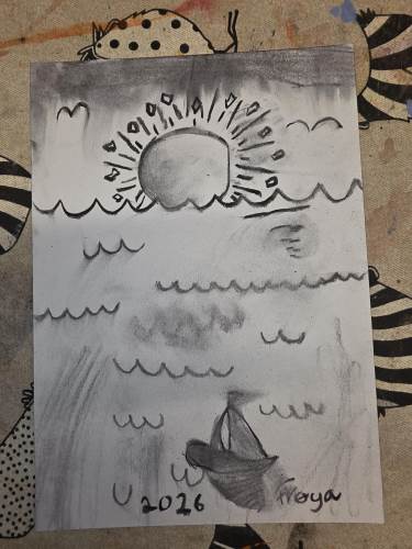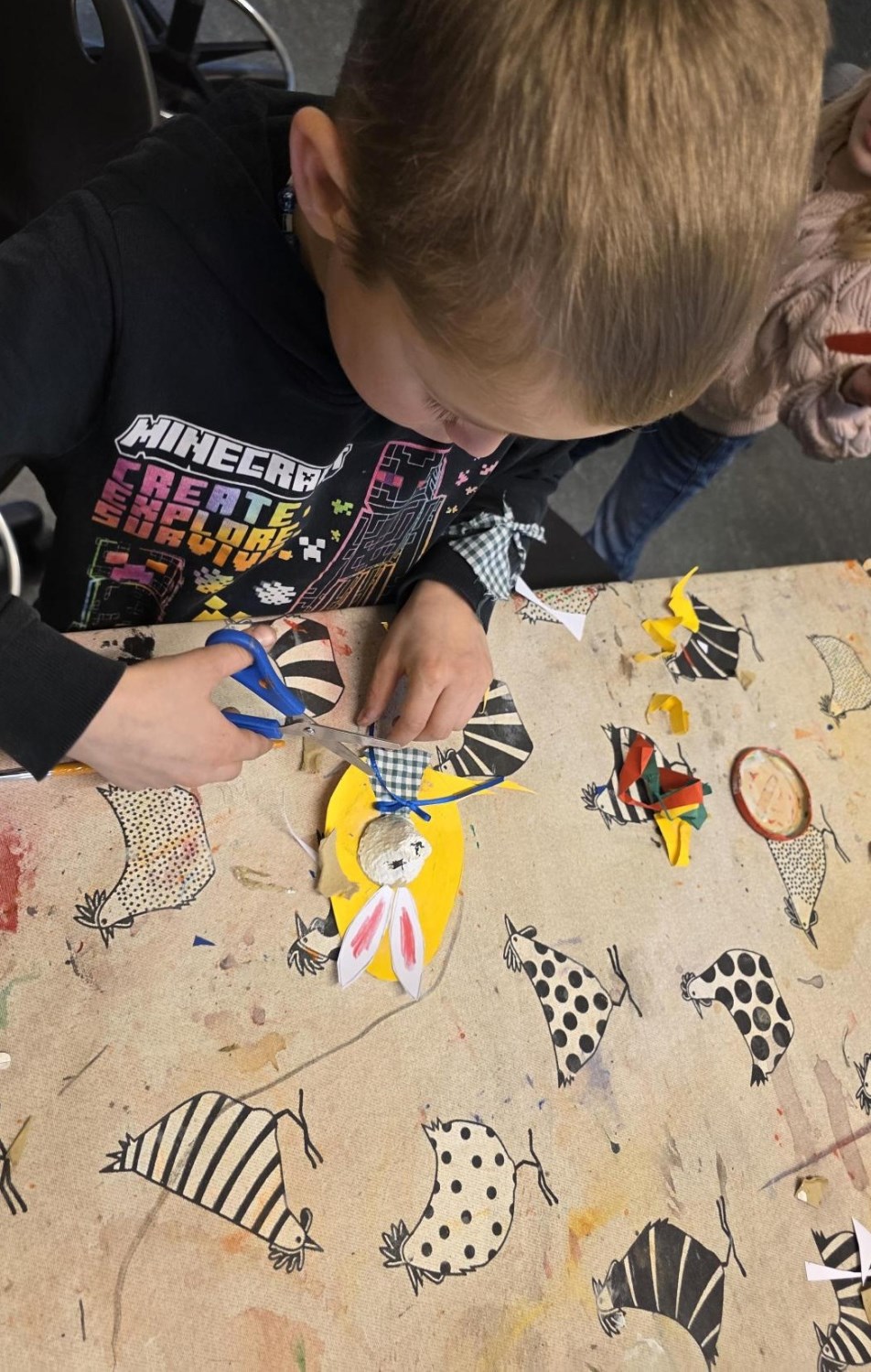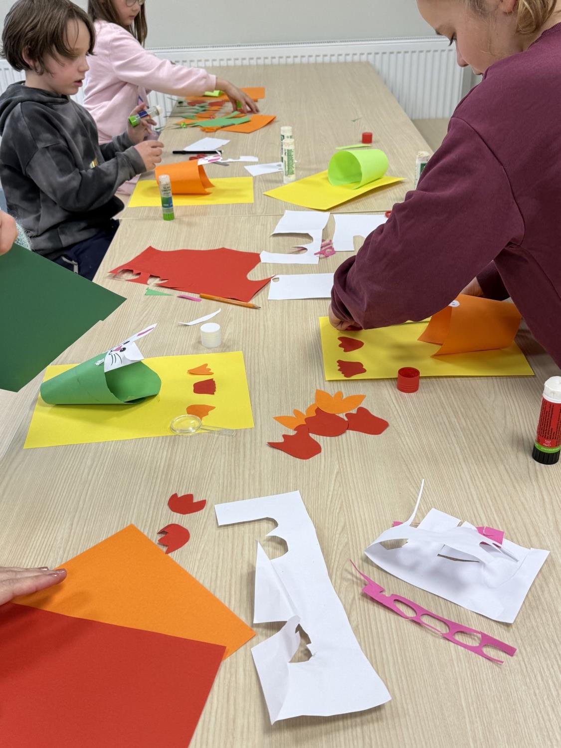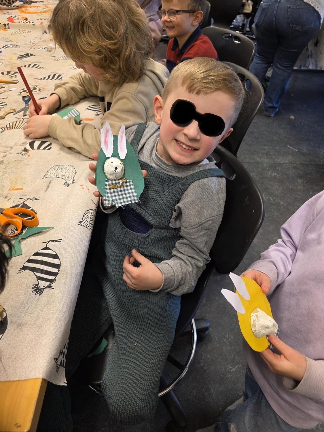 Barna har òg vore kreative inne. Dei har laga påskepynt, flotte vårlege kunstverk, og teikna med kullstifter – mange spennande uttrykk og fine resultat.