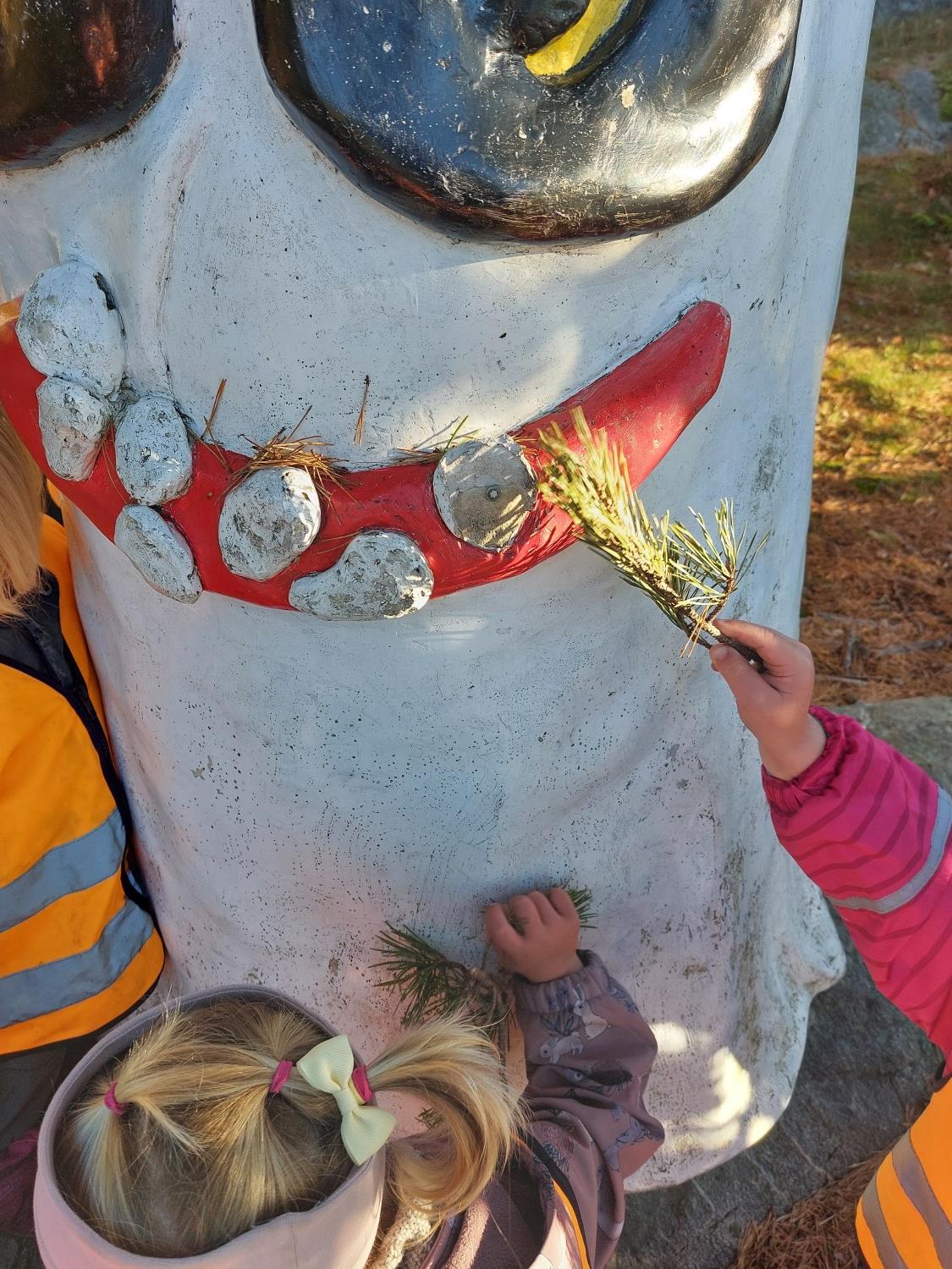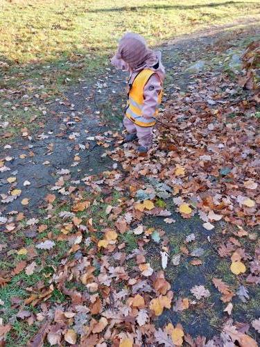 Vi på avdeling Krabbe benytter vi oss mye av nærmiljøet rundt oss! Tur til "Spøki" er en av de spennende turplassene i nærmiljøet vårt. Barna fikk mulighet til å utforske omgivelsene gjennom lek, undring og sanseerfaringer. Vi så på trærne som har skiftet farge, besøkte Spøki og øvde oss på å ferdes trygt i terrenget.
