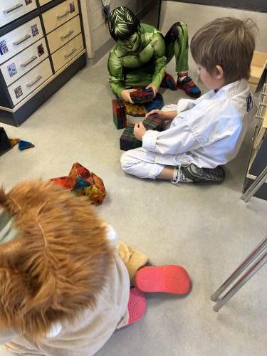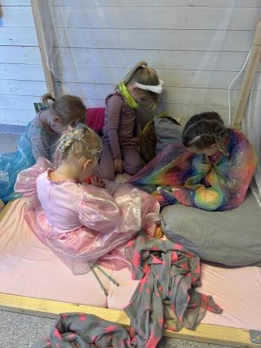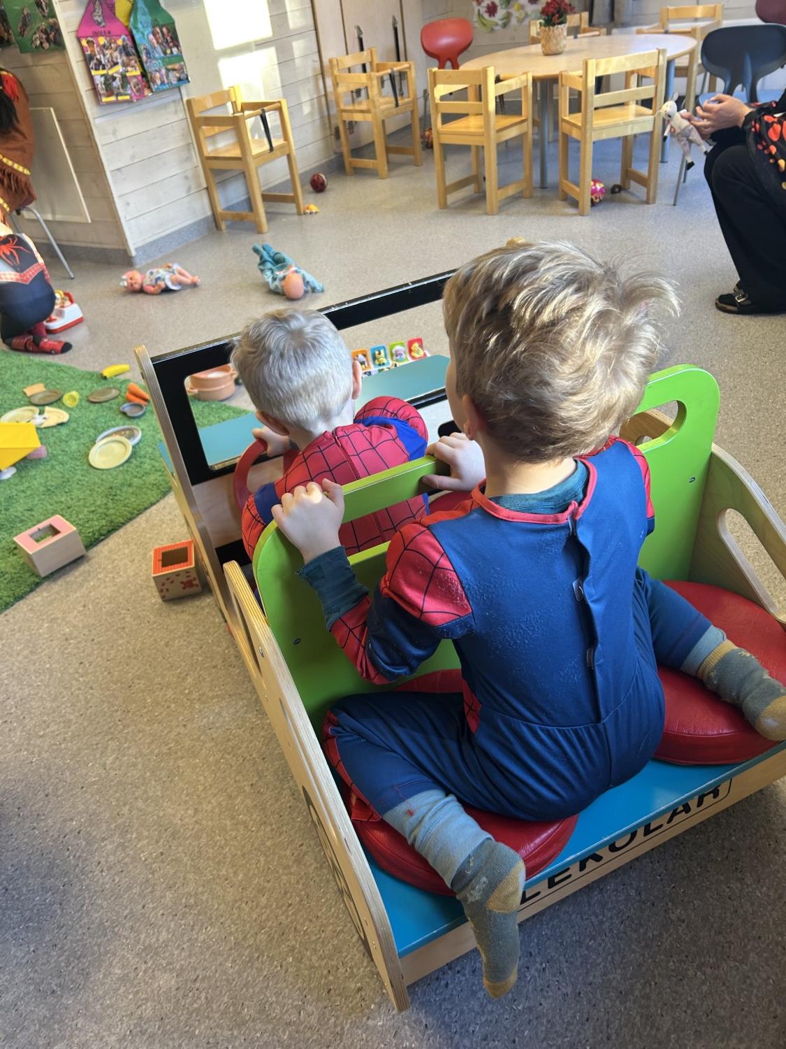 Fastelavenssøndag nærmet seg, og da er det karneval i barnehagen. Både små og store gledet seg og kledde seg ut. Det var disco, bowling, katta i sekken og mye gøy lek på tvers på huset.