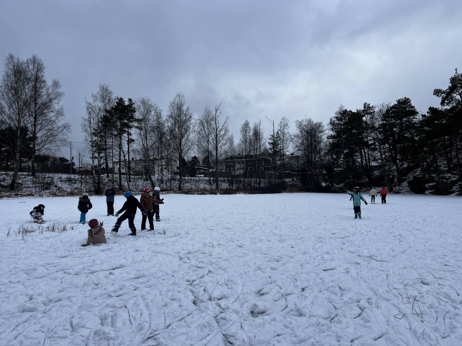 Vel fremme brukte vi dagen på å få på skøyter, leke på isen, øve på å gå, hjelpe hverandre, motivere hverandre og ha det gøy sammen.
