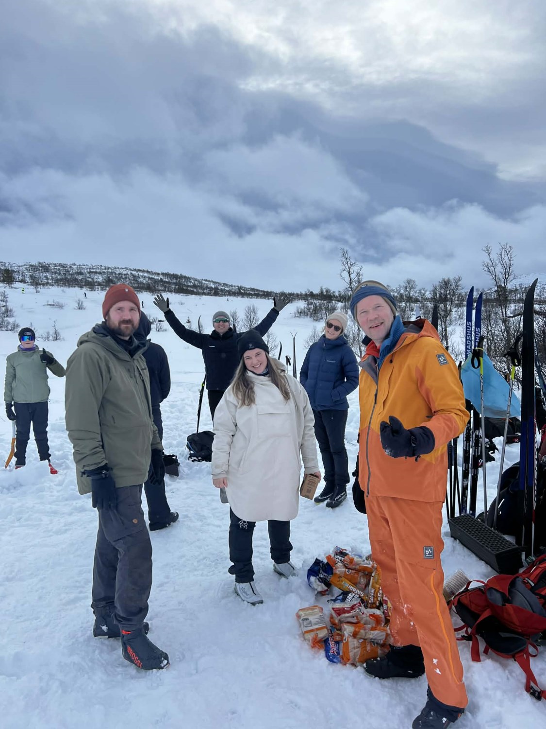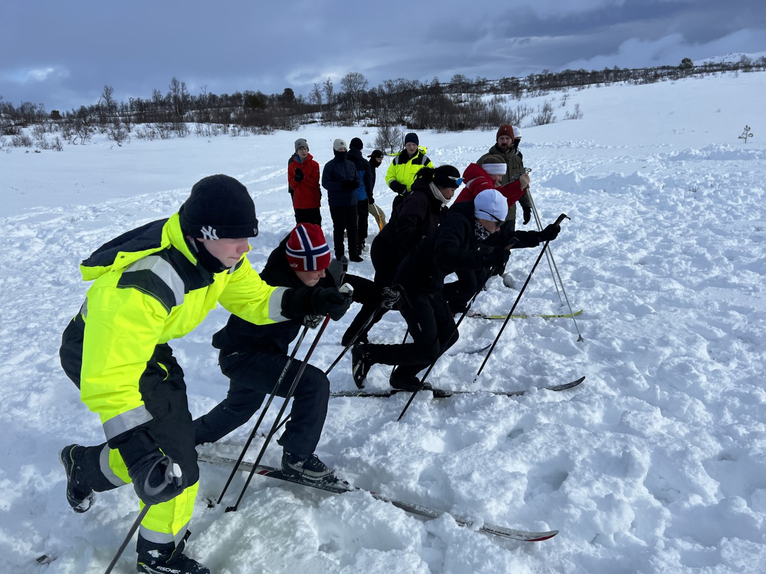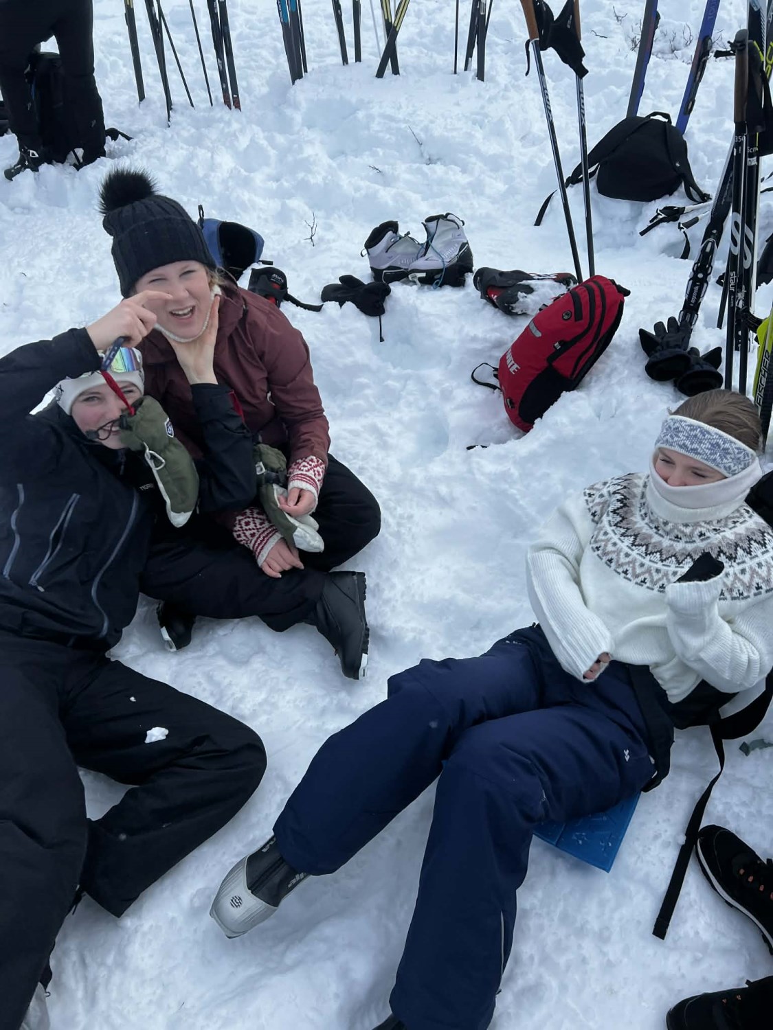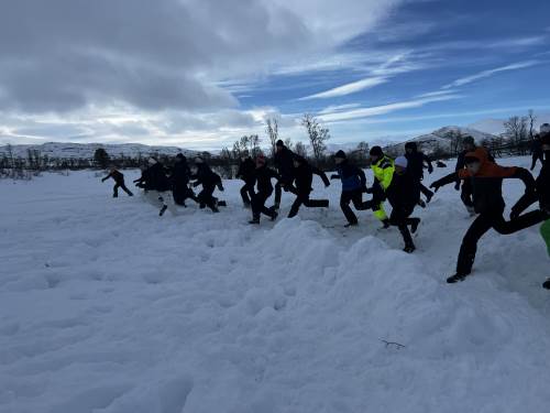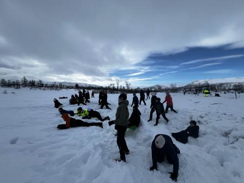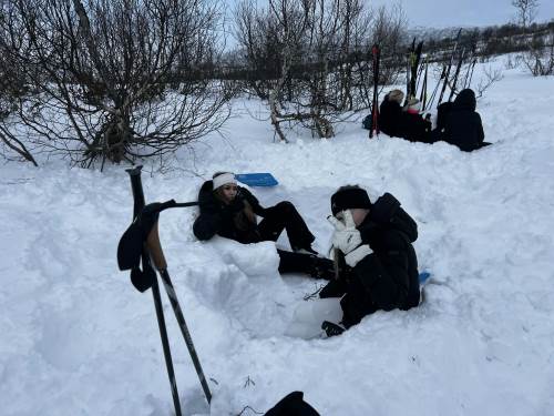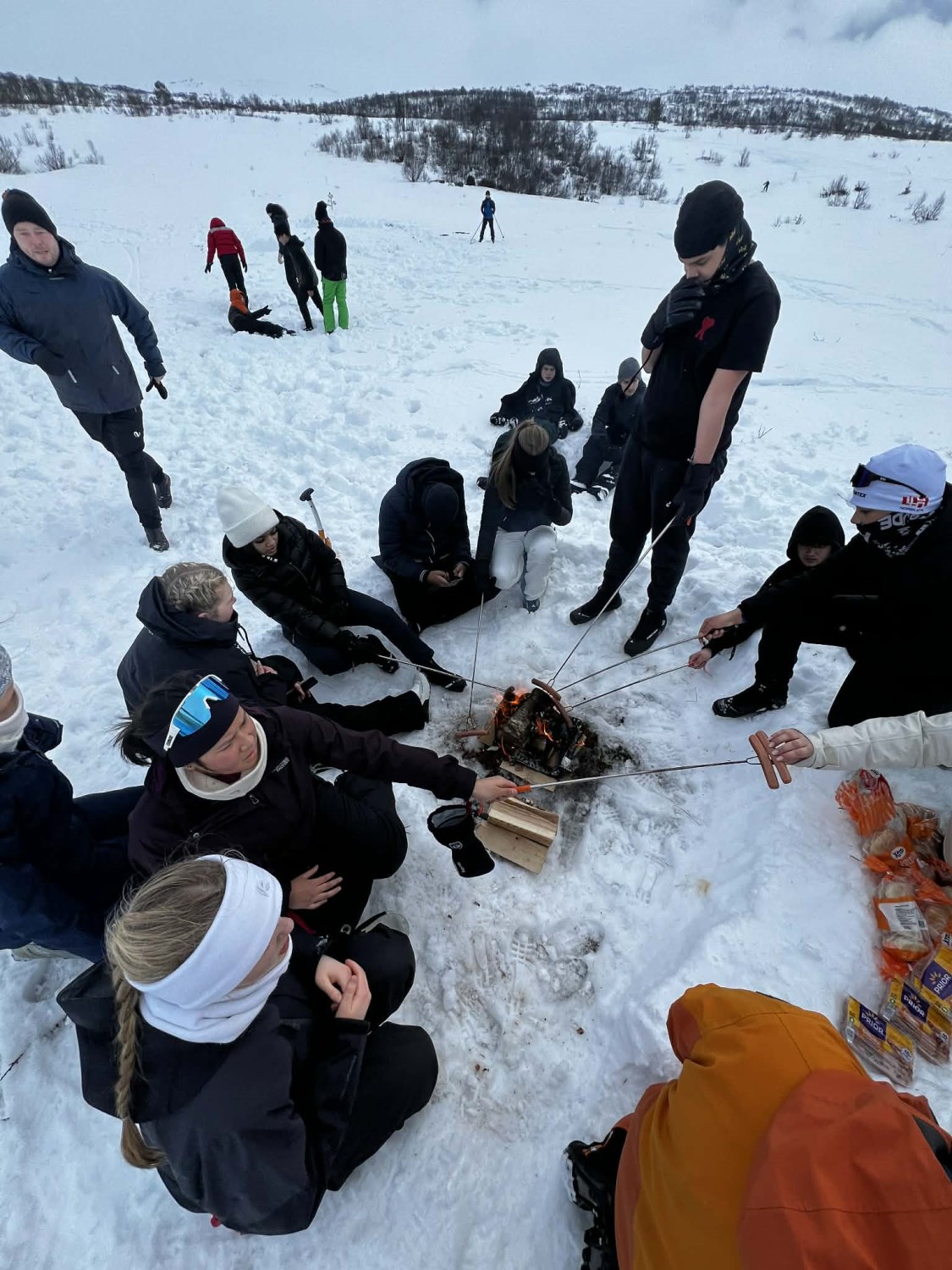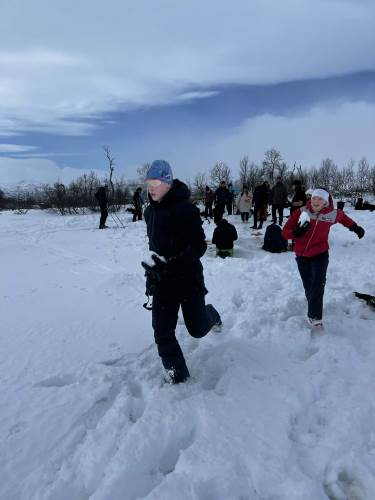 Dagen startet med en kort skitur ut for å etablere leirplass. En trenger ikke å gå så langt for å få en veldig fin tur! Vi lagde bål og grillet pølser, hadde snøballkrig, noen lagde hopp og jeg tror mange hadde en fin dag ute i snøen. Vi hadde også en liten vinterversjon av mesternes mester. Elevene ble delt inn i lag og fikk konkurrert i mer eller mindre klassiske øvelser som svensk langrenn, «indre klokke», hentelek og andre aktiviteter.