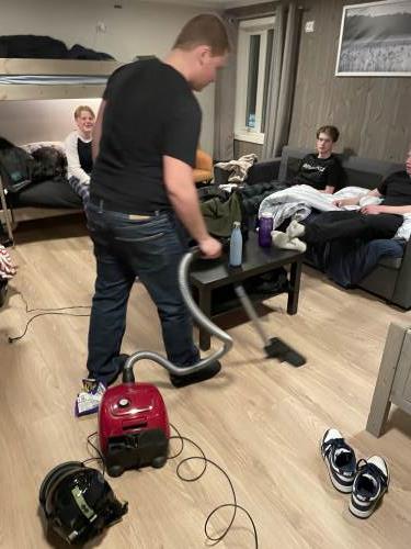 Etter kveldssamlingen var det en liten gjeng som dro ut på en kveldsskitur med hodelykt. Selv om gradestokken viste nærmere 10 minusgrader, så var de ute i nærmere to og en halvtime og de var ikke tilbake før klokken nærmet seg halv elleve. Hyttetiden hele uken har vært kl. 22.00, men de ga beskjed underveis, og aldri har det vært enklere å gi noen dispensasjon til å få være ute etter hyttetid. Skitur på nattestid blir kanskje et nytt innslag i programmet for framtidige vinterleirskoler!