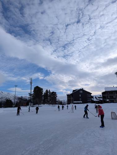 Dessverre ble akingen avlyst grunnet lite snø i aketrasén, men vi fikk på plass noen alternative aktiviteter som mange var med på. Halvparten gikk ned til skøytebanen og grendehuset. Banen ble brøytet til ære for oss (velger jeg å tro), og det var overraskende gode forhold på isen. Andre fikk utfordret seg i buldreveggen inne på grendehuset, og noen var innom gymsalen og fikk brent av litt krutt der.