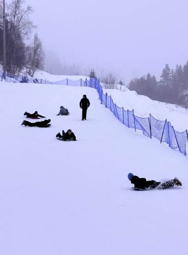 Selv om det var litt dårlig sikt i bakken, så var det god stemning blant ungdom og voksne.