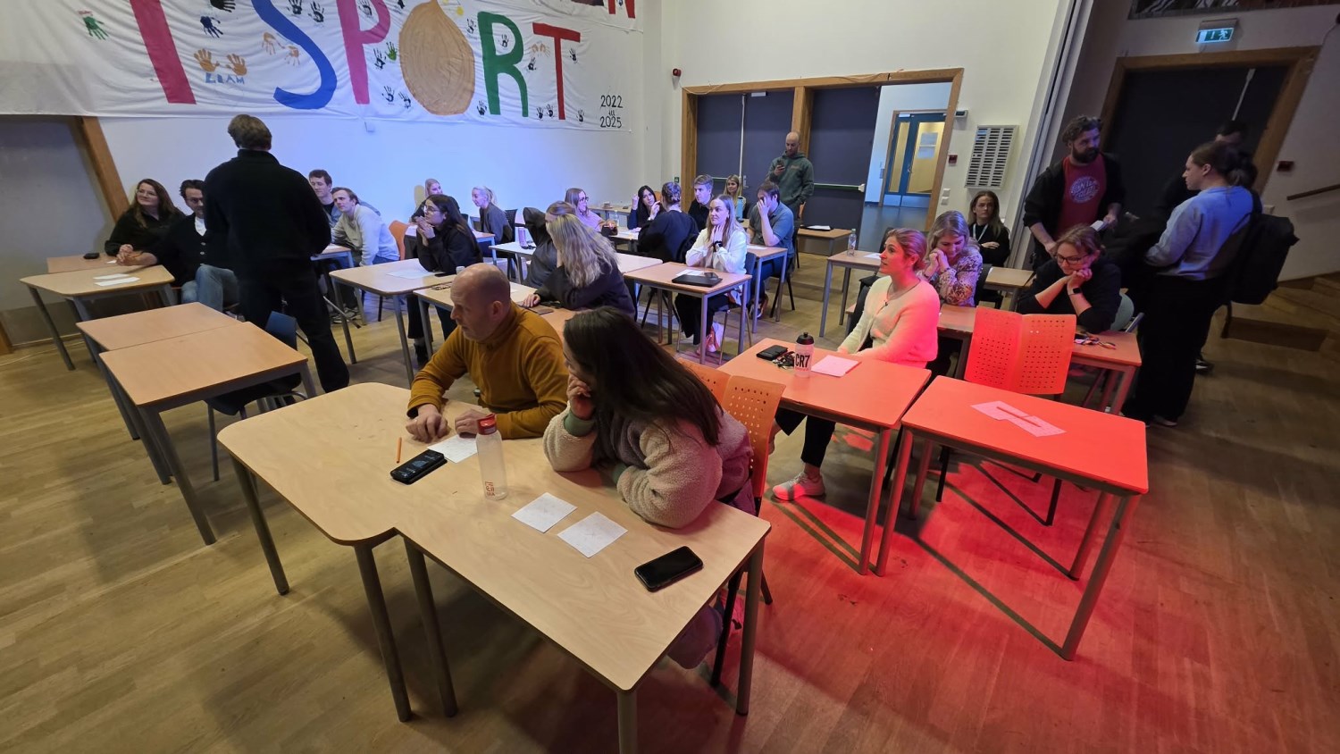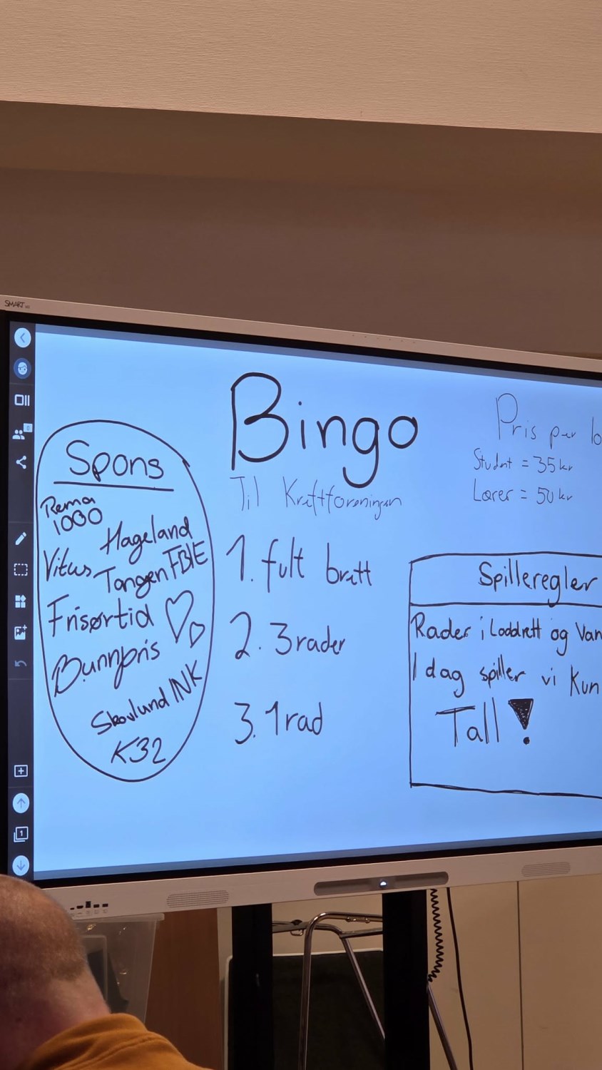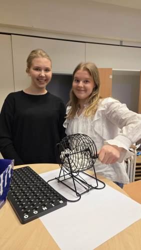 Torsdag 25. april hadde elevene i valgfaget Innsats for andre aksjonsdag. En gruppe solgte lodd til skolens ansatte, elever og foresatte med fine premier forskjellige bedrifter hadde sponset dem med. En annen gruppe arrangerte en god gammeldags bingo-økt i skolens amfi for alle lærere og studenter. Godt og vell 40 voksne - inkludert rektor og avdelingsleder - satt og koste seg med at flinke elever arrangerte bingo for oss. Bingoen ble gjennomført med en tombola (ingen digitale hjelpemidler her altså) og manuell trekning. Latteren satt løst da flere av skolens ansatte slet med å holde tritt med tallene som rullet ut. Deilig at elevene kan føle litt på frustrasjon når deltagere ikke følger godt nok med. Mye latter ble det også når premiene donert av en frisørsalongen Frisørtid ble vunnet av de to i kollegiet med minst hår. En god gjerning og god underholdning fra elevene som tar faget Innsats for andre der altså.