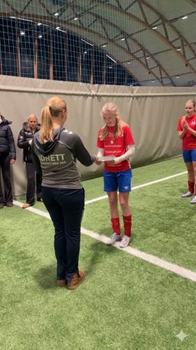 Jentelaget leverte på sin side en strålende prestasjon og gikk hele veien til topps i turneringen. Et av høydepunktene var da de fikk revansje etter et knepent 2–1-tap mot Vennesla i gruppespillet. I semifinalen møttes lagene igjen, og denne gangen vant Torridal overlegent 6–1. I finalen fortsatte de det sterke spillet og sikret en suveren 3–0-seier mot Sogndalen. Åse Cornelia fra 10. trinn ble kåret til banens beste i finalen etter en imponerende innsats. På laget spilte også Soroya, Nora, Vilde, Andrea og Sofia fra 10. trinn, samt Eli fra 9. trinn – alle med viktige bidrag til lagets triumf.