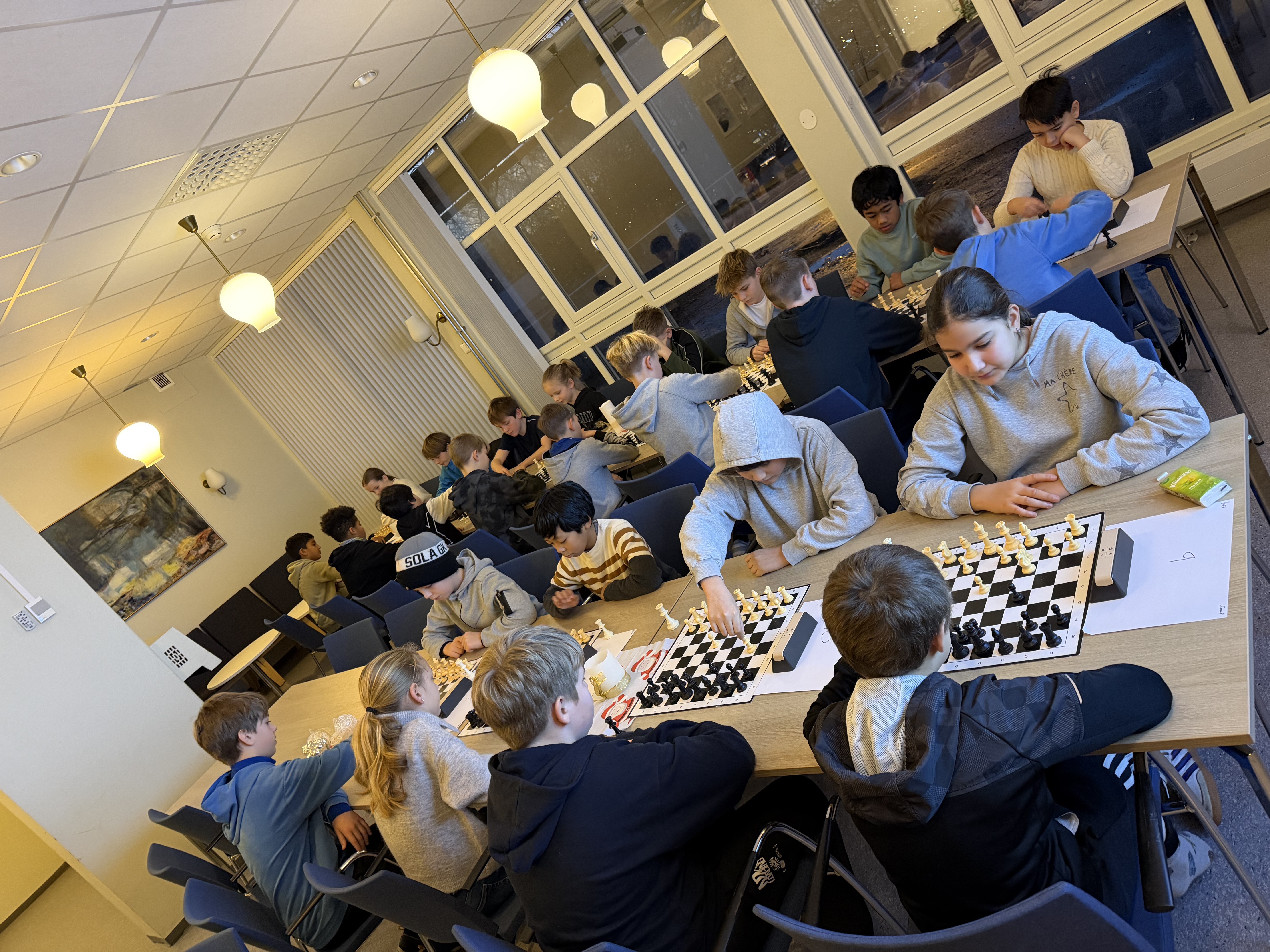 Elevene har vist eksemplarisk god oppførsel og fairplay gjennom hele dagen, og det er kjempekjekt å se så mye sjakkglede samlet i ett rom.