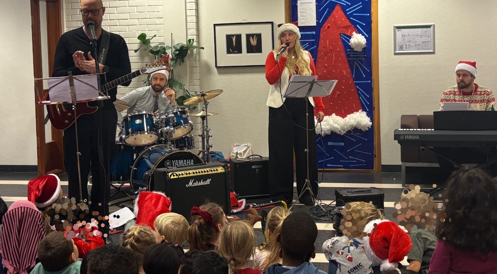 bestående av rektor og flinke lærere har hatt julekonsert for alle elever og