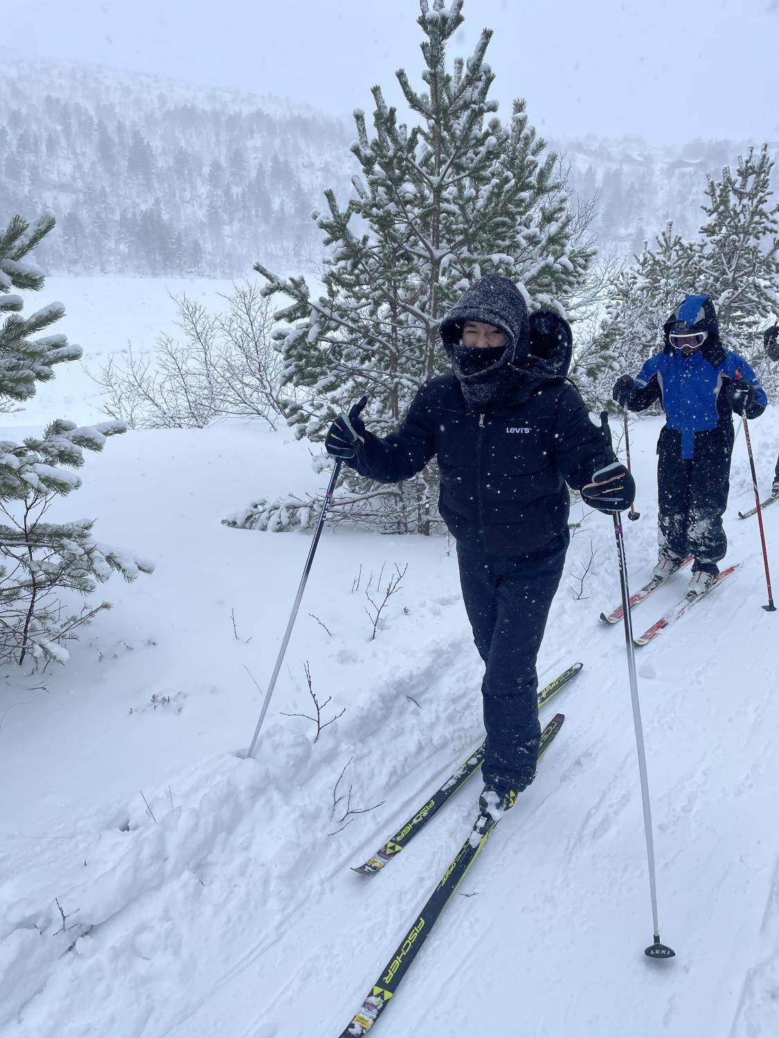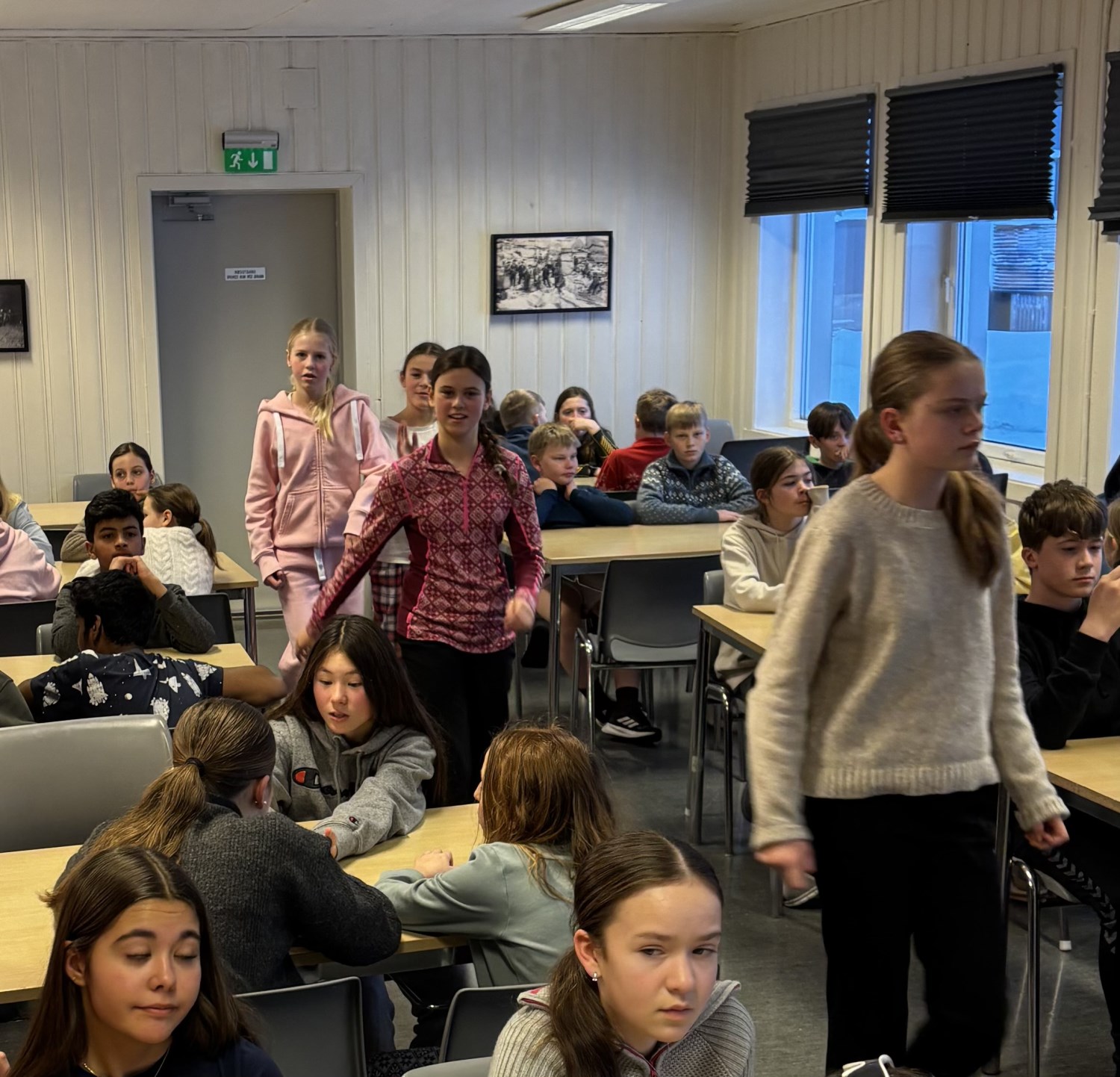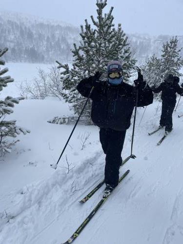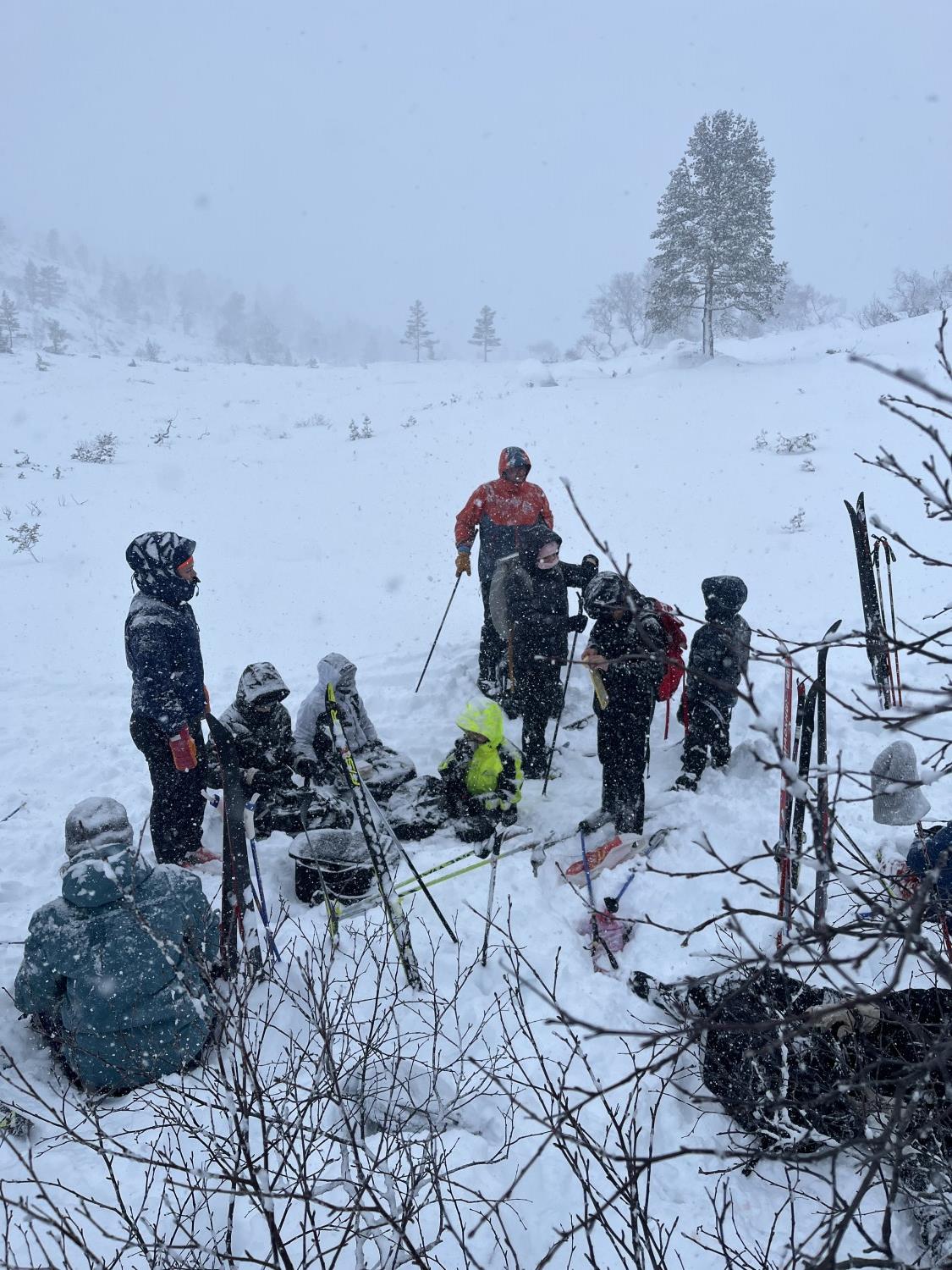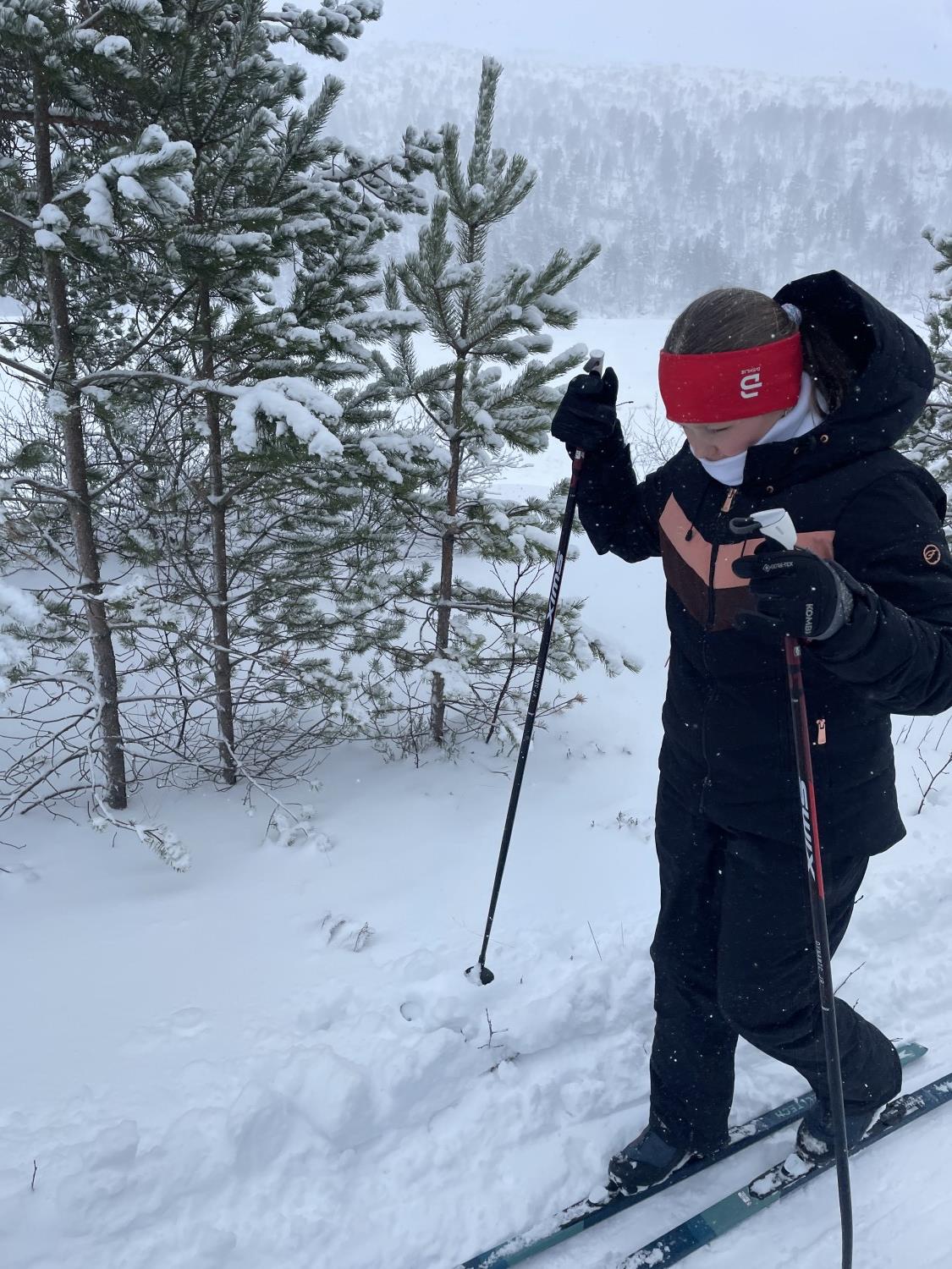 Me har hatt ein flott siste dag på Knaben, sjølv om vêrgudane ikkje var heilt med oss i dag heller. Mykje vind og snøbyger som kom sidelengs piska godt i ansiktet. Uansett lite klaging og mykje godt humør. Nokre elevar valgte å bli igjen ved leirskulen, mens 30 av elevane blei med på kort eller lang skitur.