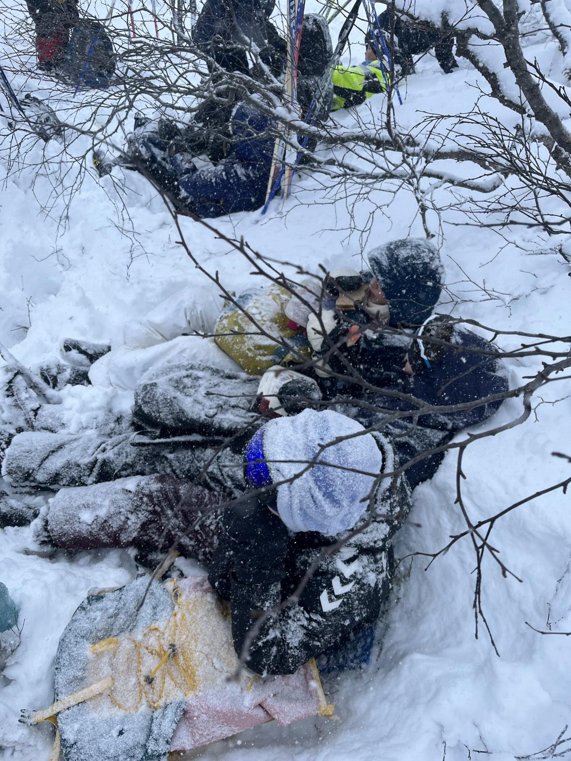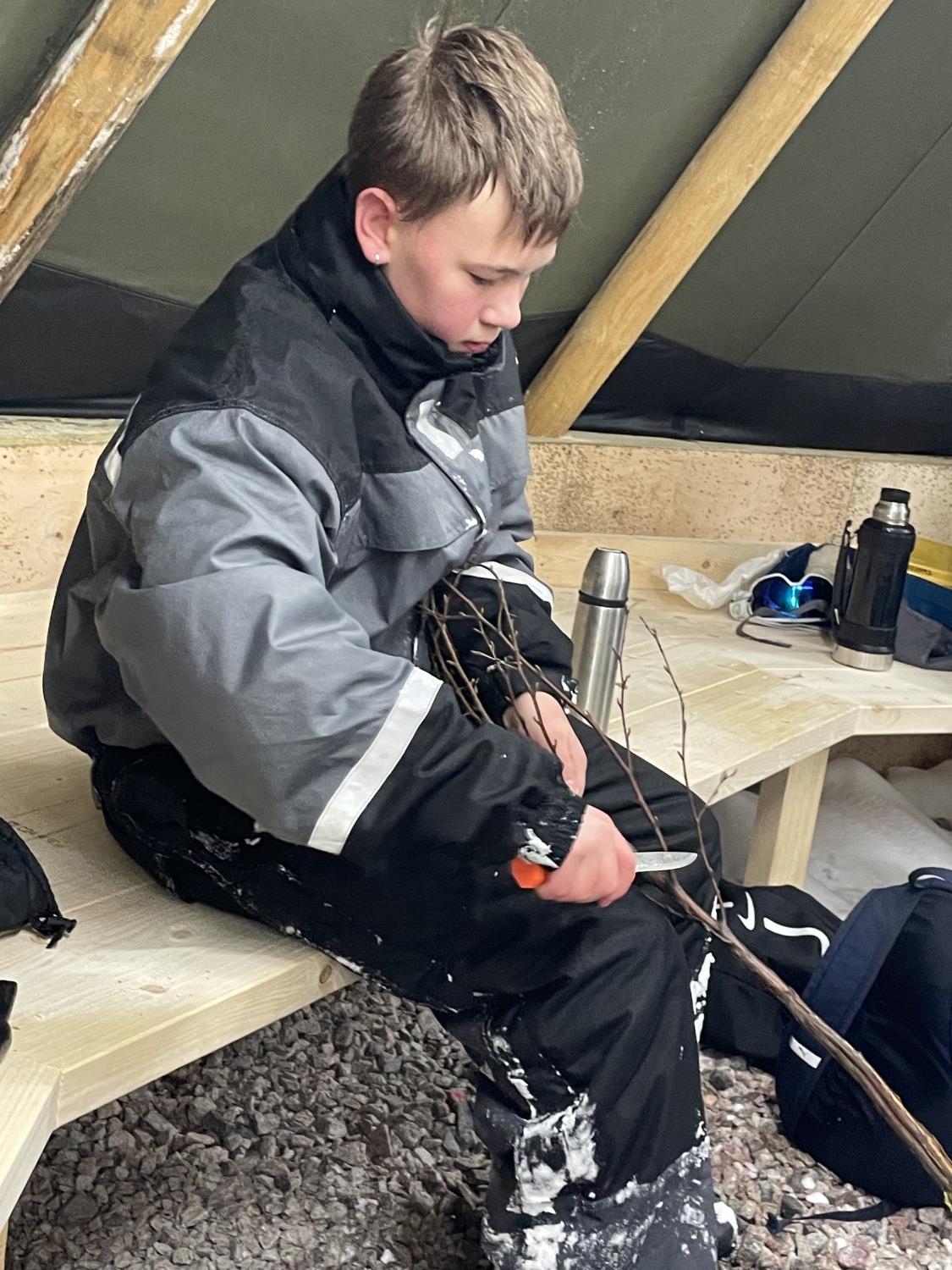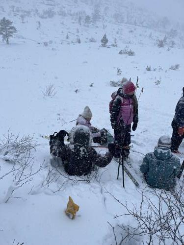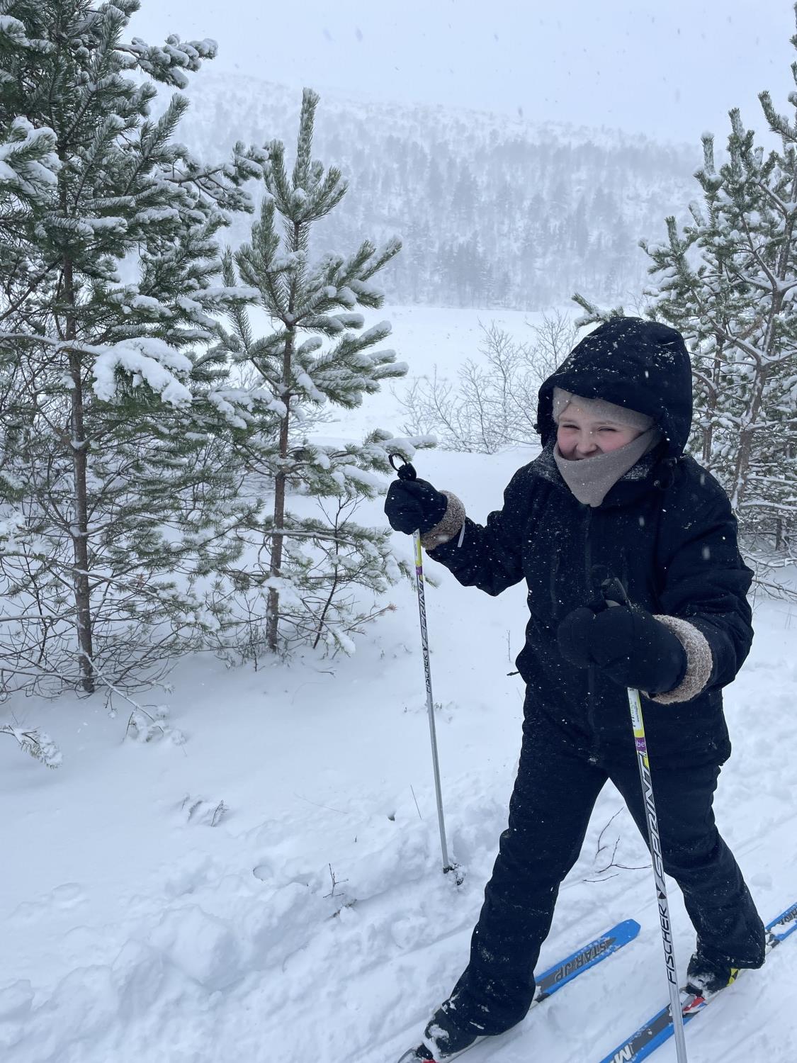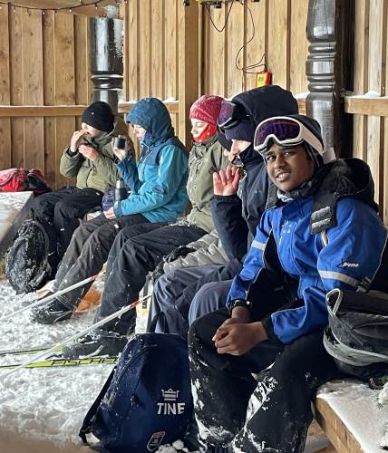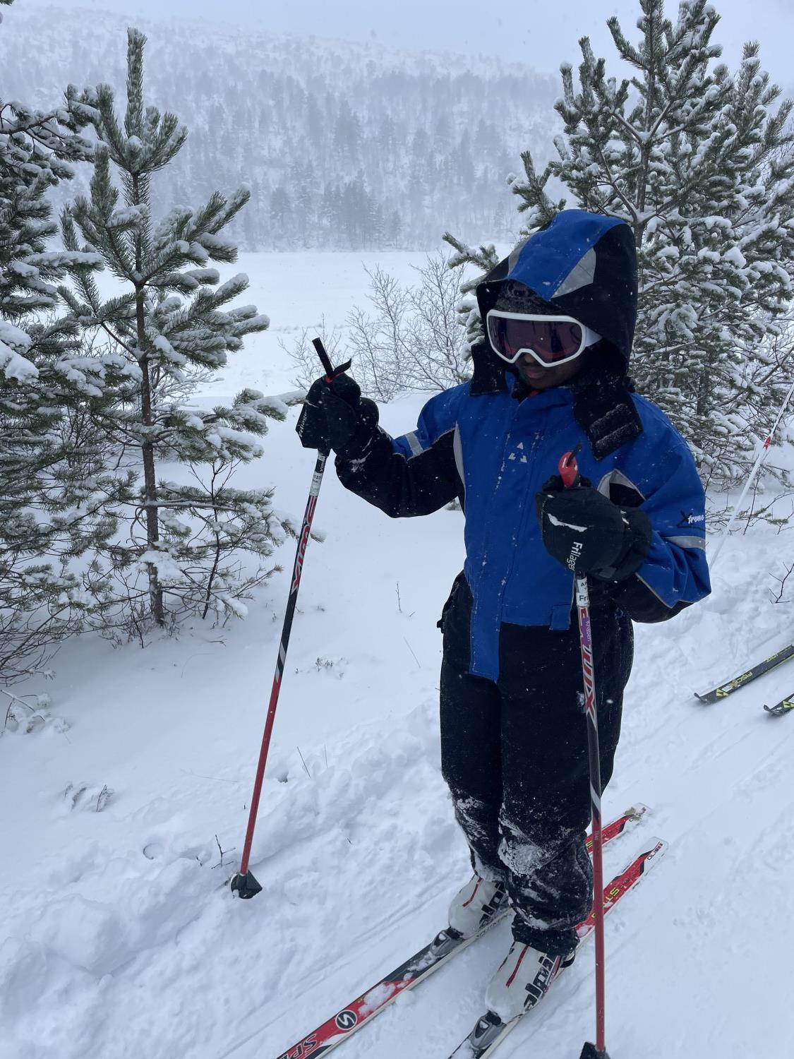 Me har hatt ein flott siste dag på Knaben, sjølv om vêrgudane ikkje var heilt med oss i dag heller. Mykje vind og snøbyger som kom sidelengs piska godt i ansiktet. Uansett lite klaging og mykje godt humør. Nokre elevar valgte å bli igjen ved leirskulen, mens 30 av elevane blei med på kort eller lang skitur.
