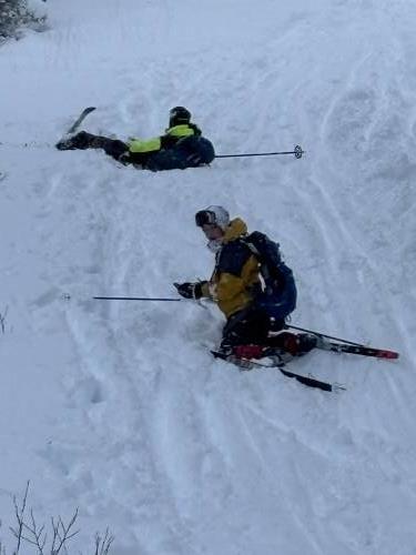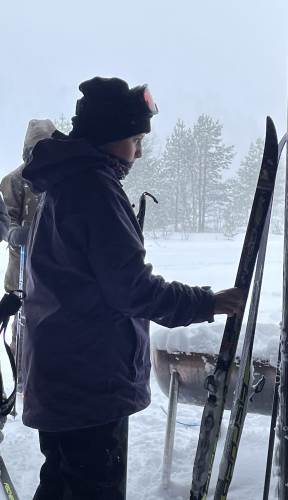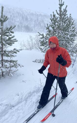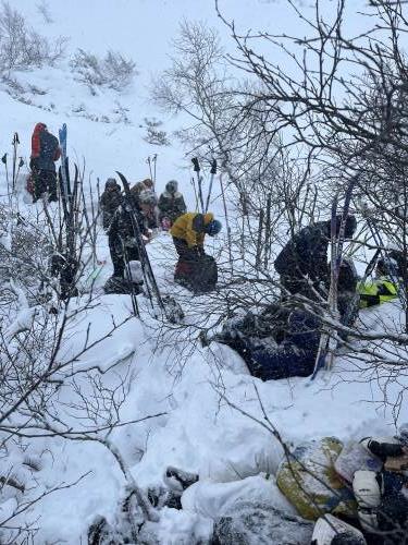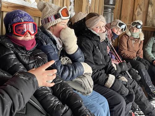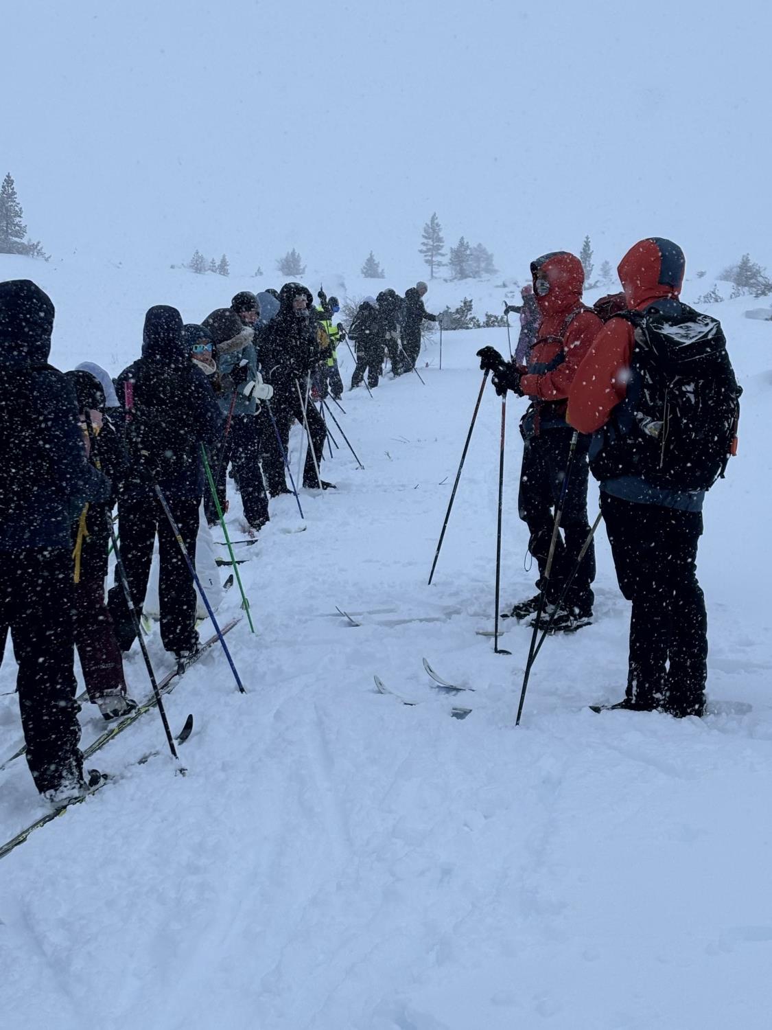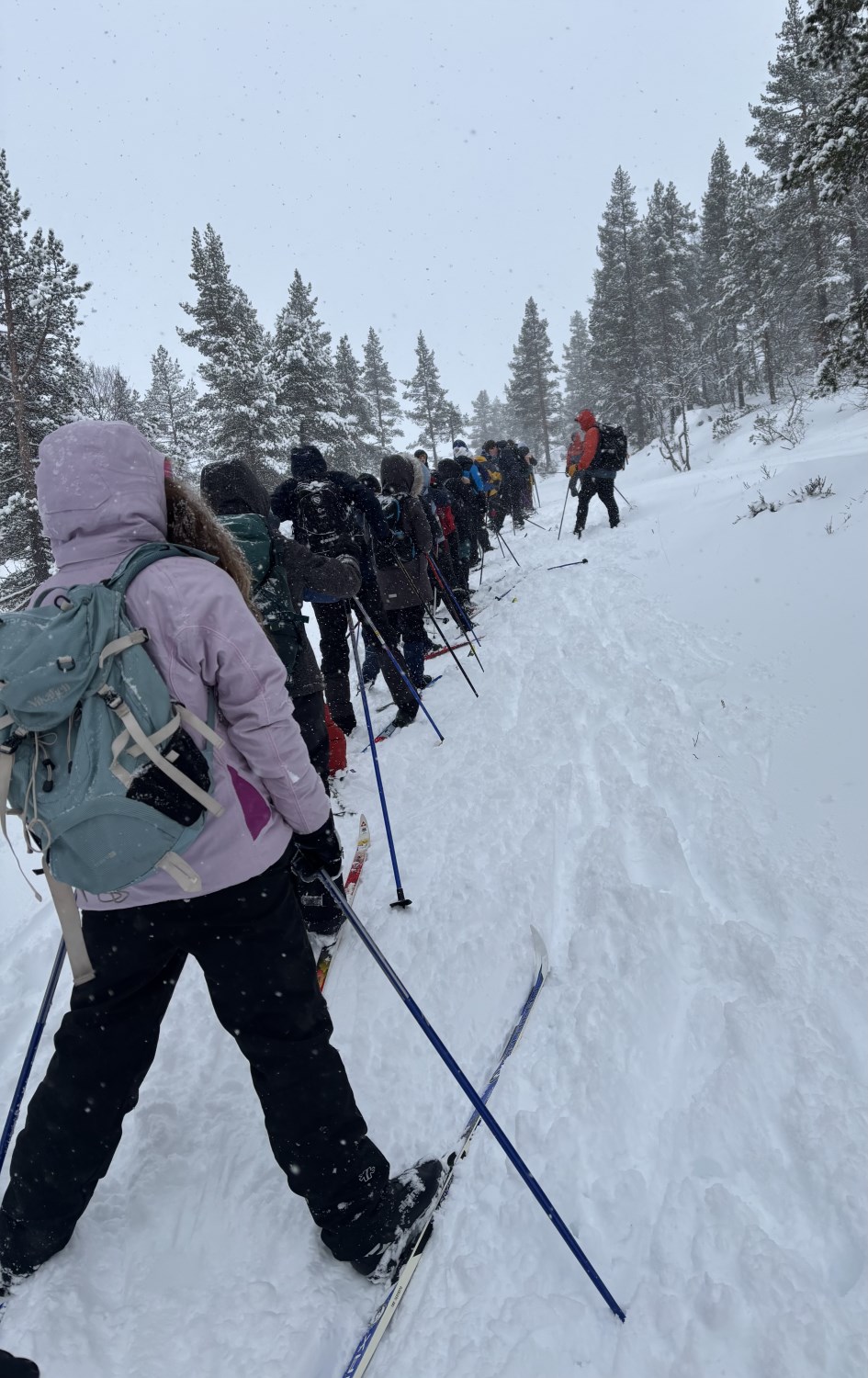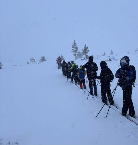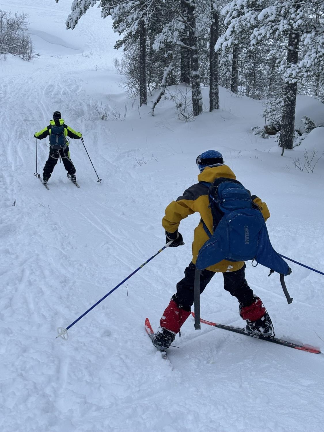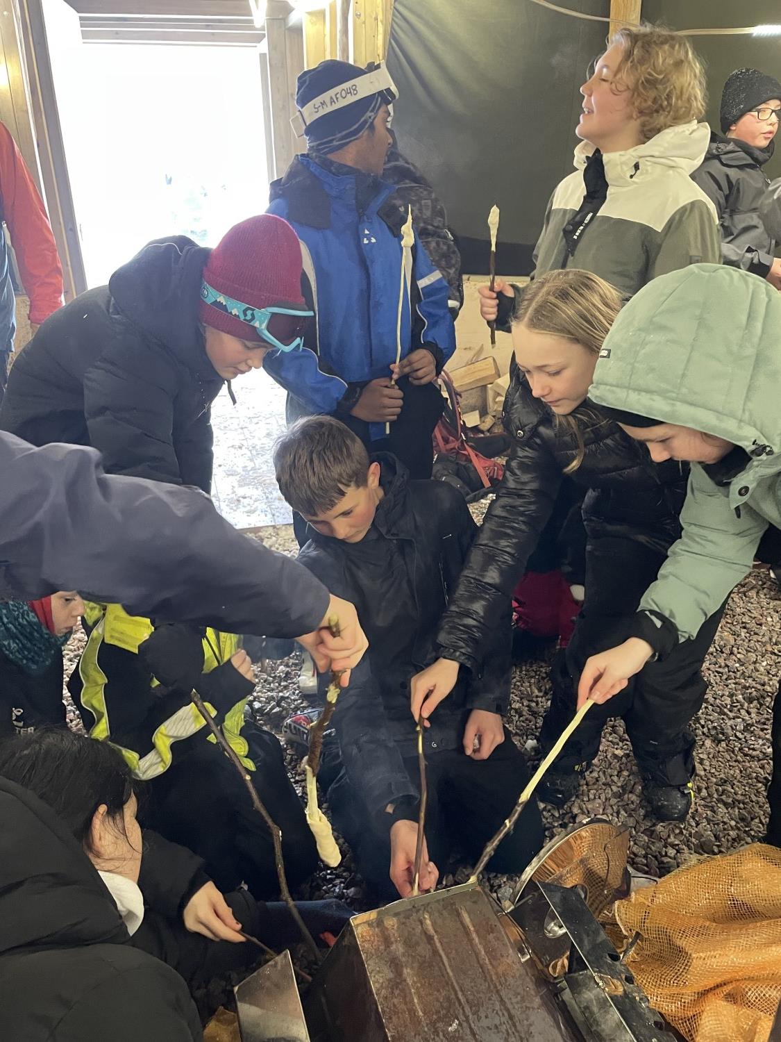 Me har hatt ein flott siste dag på Knaben, sjølv om vêrgudane ikkje var heilt med oss i dag heller. Mykje vind og snøbyger som kom sidelengs piska godt i ansiktet. Uansett lite klaging og mykje godt humør. Nokre elevar valgte å bli igjen ved leirskulen, mens 30 av elevane blei med på kort eller lang skitur.
