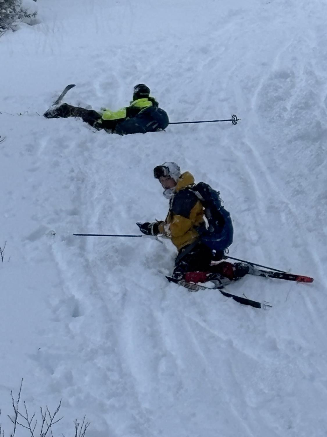 Dei som blei igjen ved skulen hadde skiorientering. Postane var vanskeleg å finna, men det var iallefall ei jente som fann alle postane!