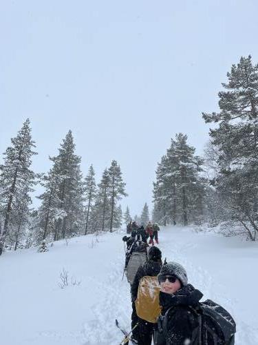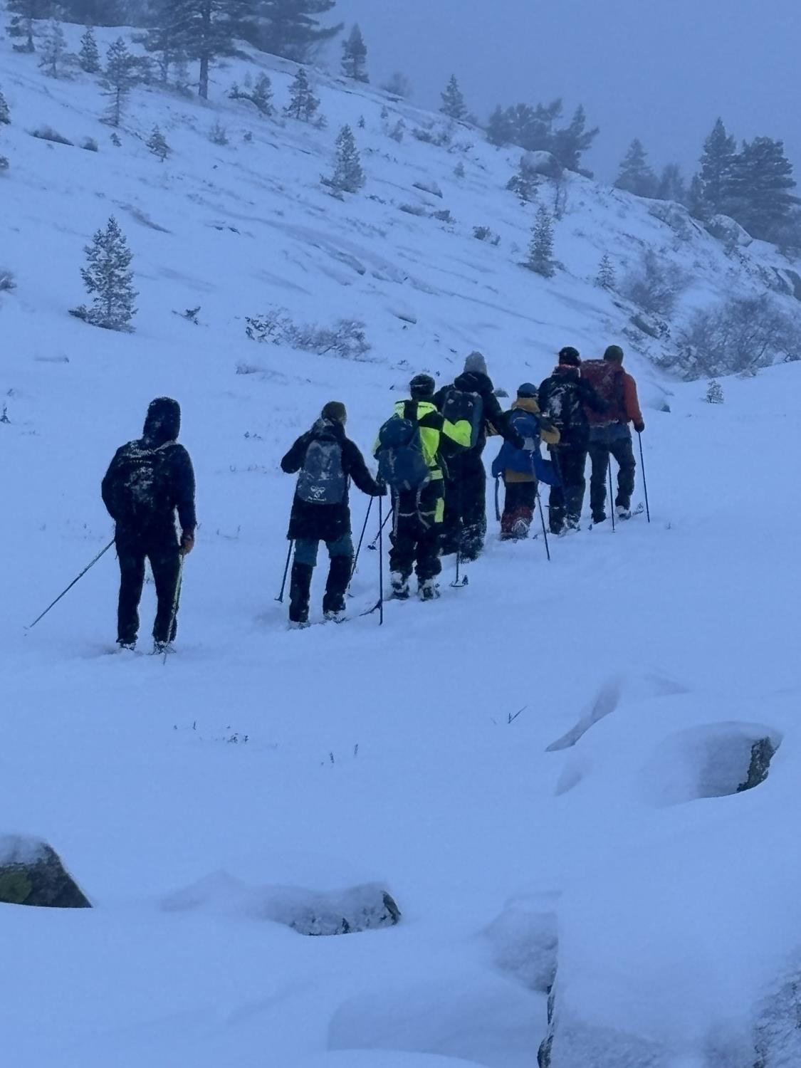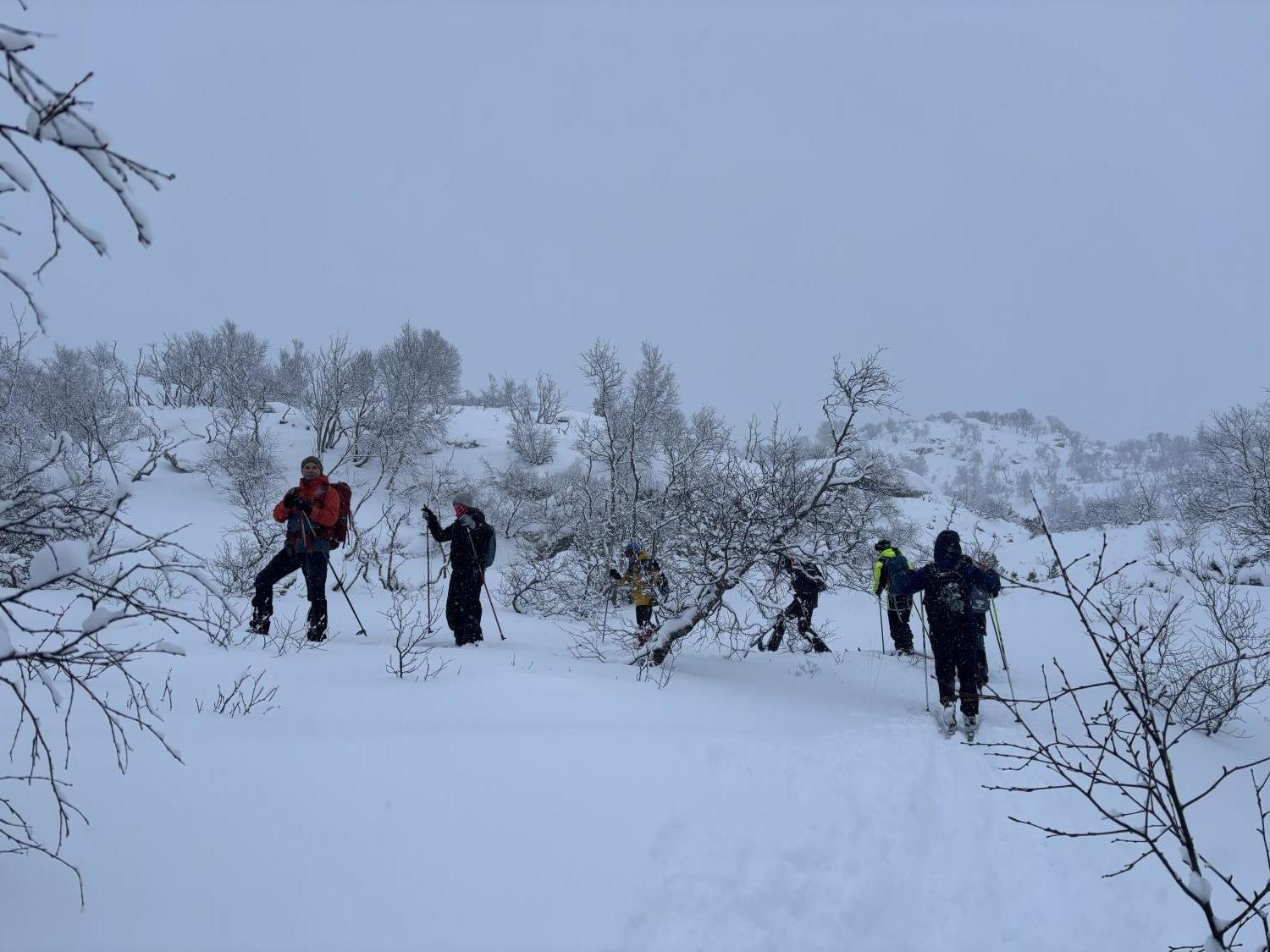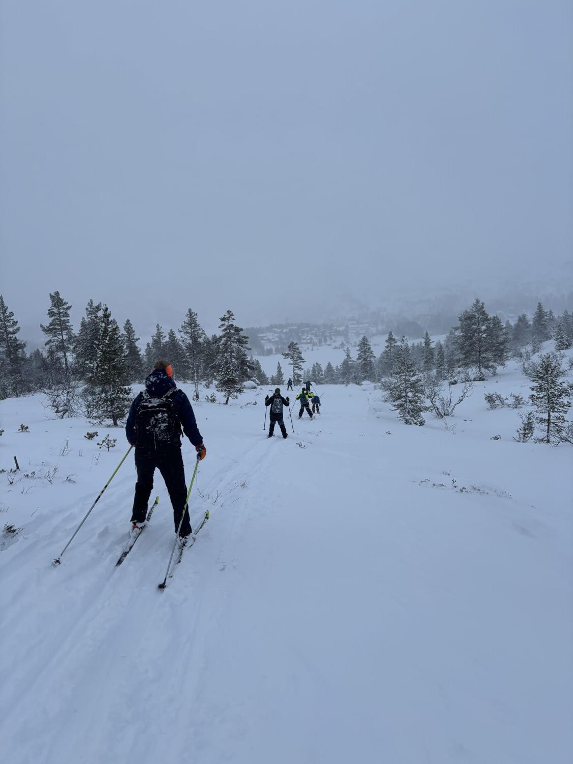 Etter lunsjen oppe på fjellet, delte Frank og Jarle gruppa i to. Dei fleste blei med ned og fekk da ein middels lang tur. Berre 8 elevar og to vaksne ville gå den lengste turen. Vinden pisket i ansiktet da vi starta, men det gjekk heilt fint fordi vi hadde vindtett jakke med hette på.