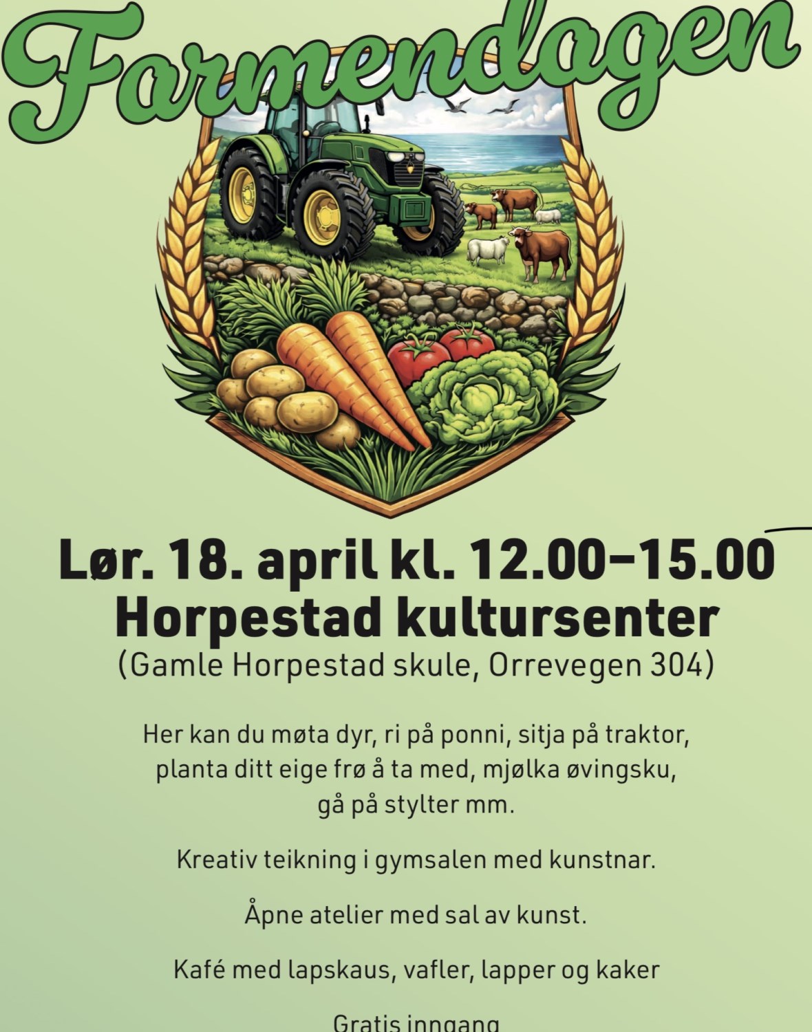 Her kan du møta dyr, ri på ponni, sitja på traktor, planta ditt eige frø å ta med, mjølka øvingsku, gå på stylter mm.