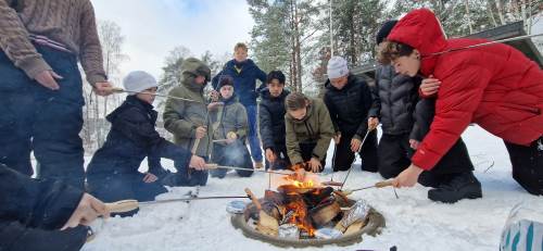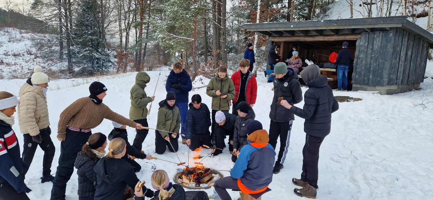 Elevene koste seg med bålmat og frilek.
