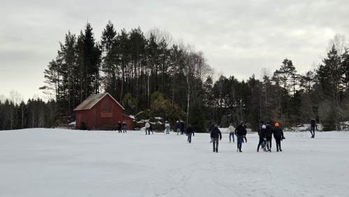 I dag ble det en kort tur til Dønnestad. Vi fikk også tid til en liten lek (den heter "sola skinner på de som...") på Dønnestad. Jeg setter veldig pris på de som bidrar i leker og moro! Det synes jeg er veldig bra for trivselen og klassemiljøet.